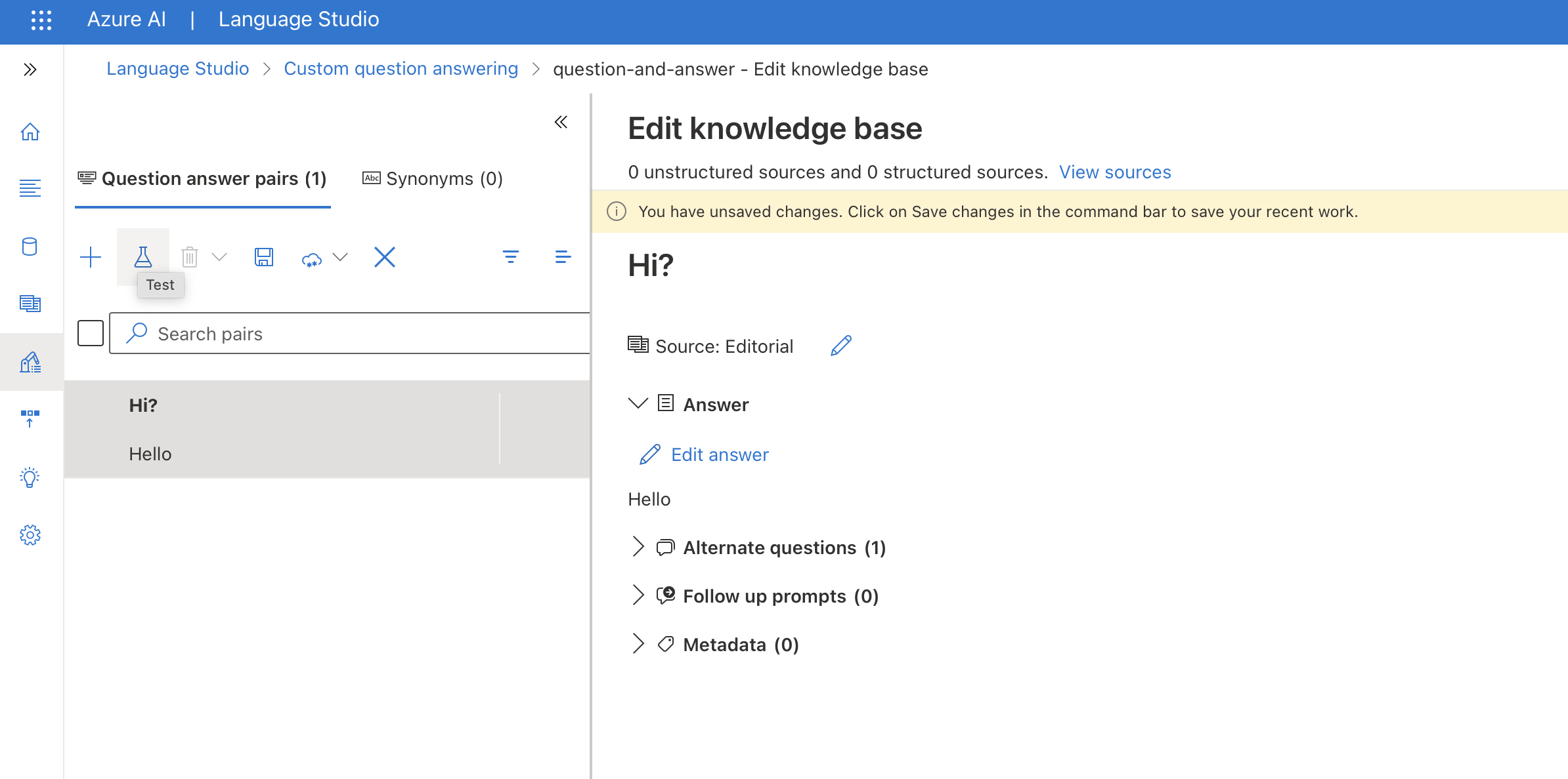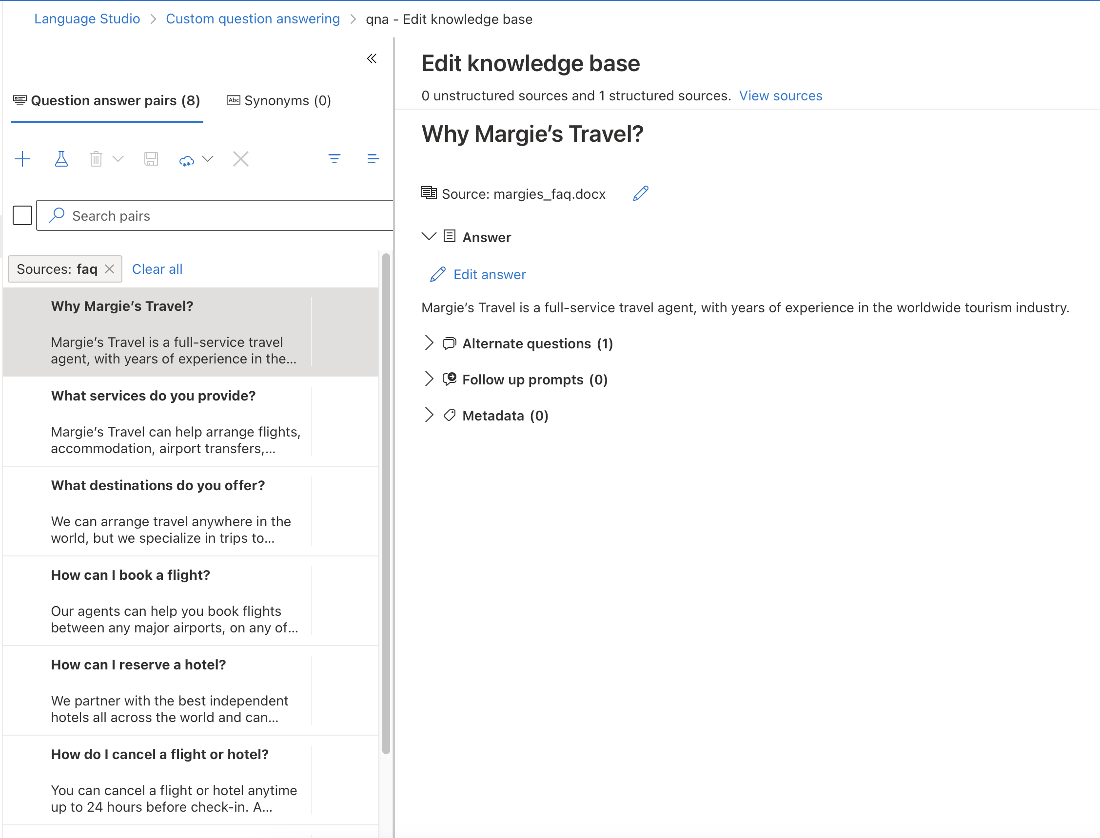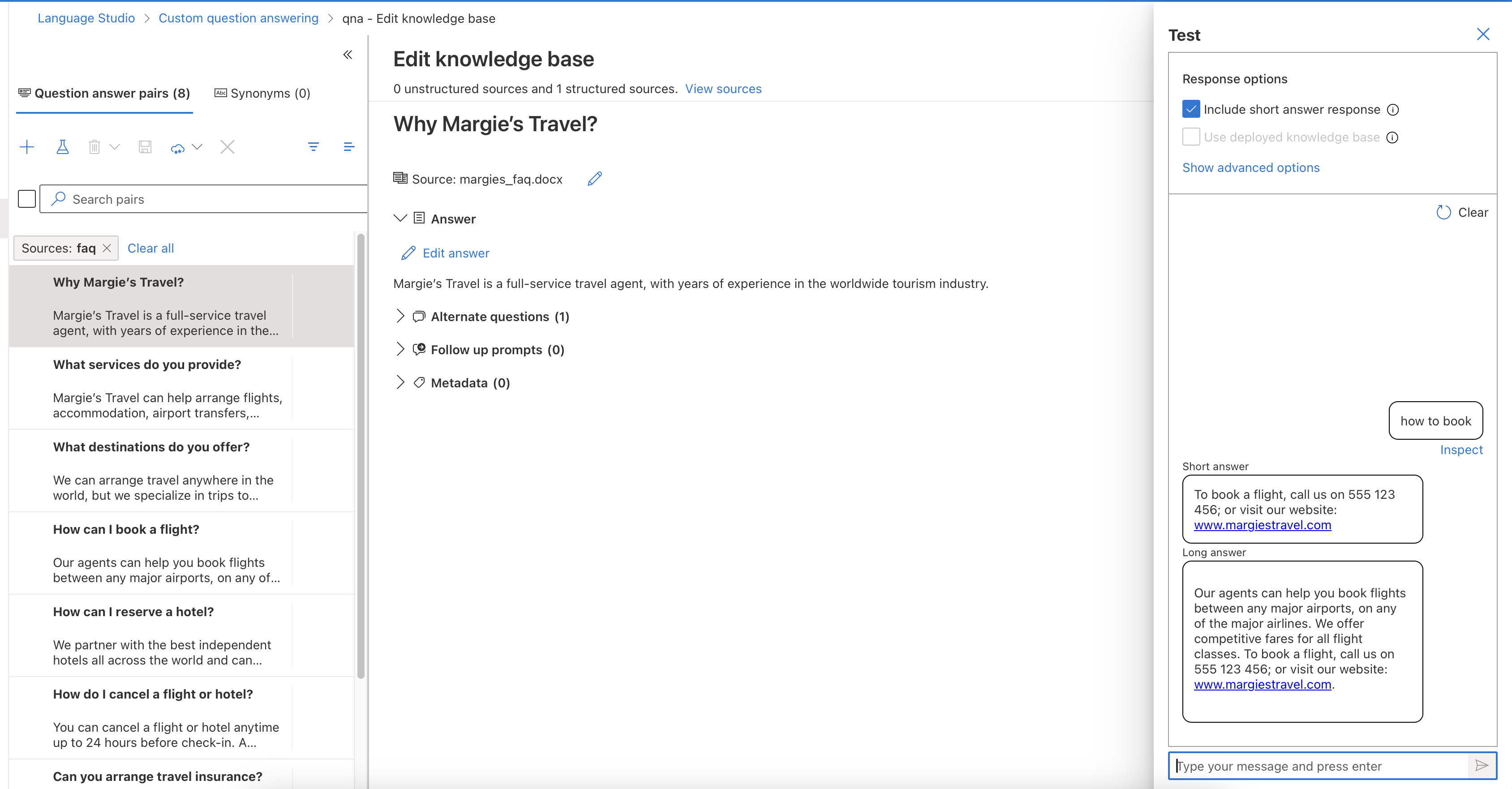 Custom question answering 선택