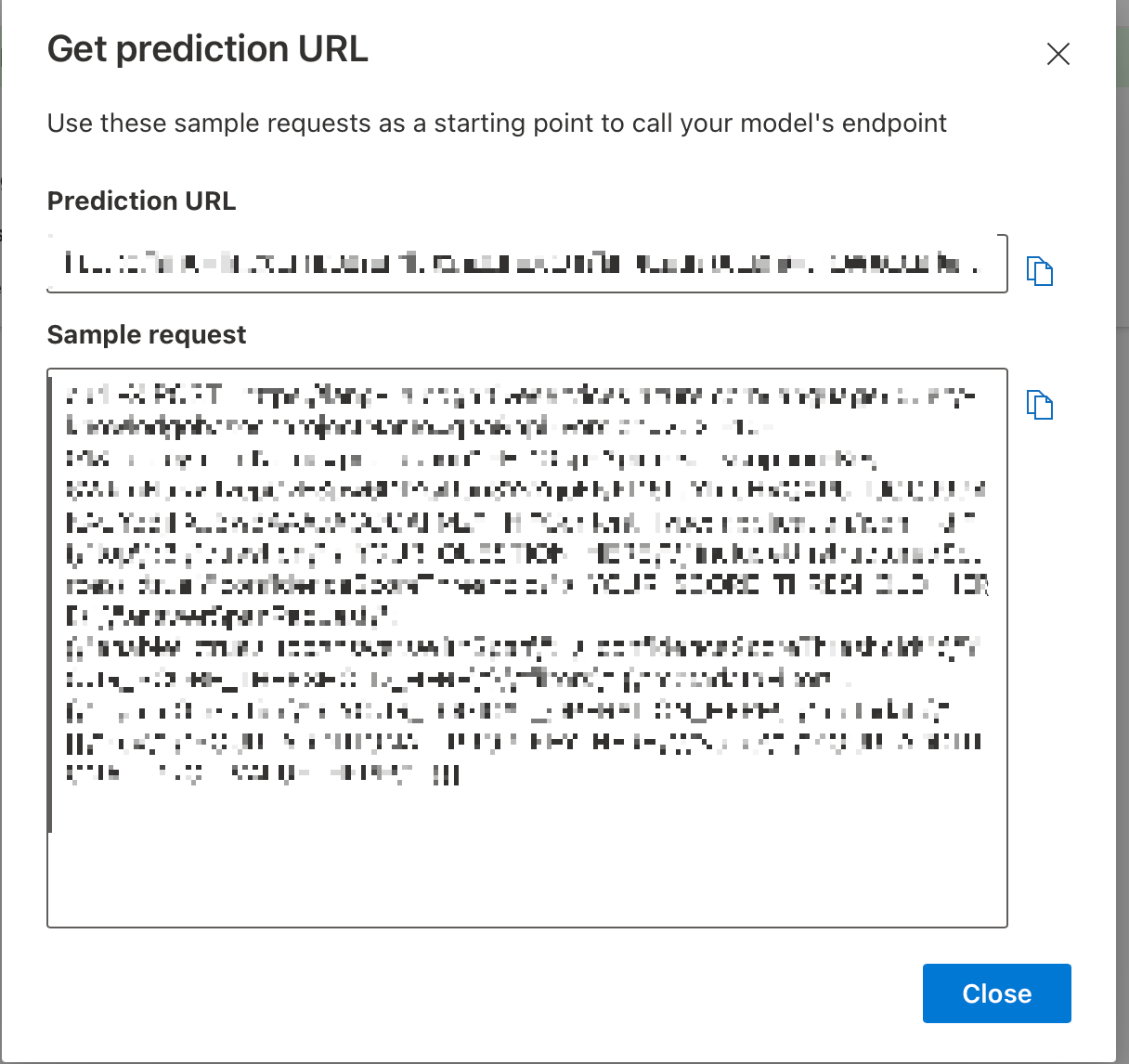 배포가 다 되면 아래와 같이 뜬다. 이제 Get prediction URL을 눌러보자.