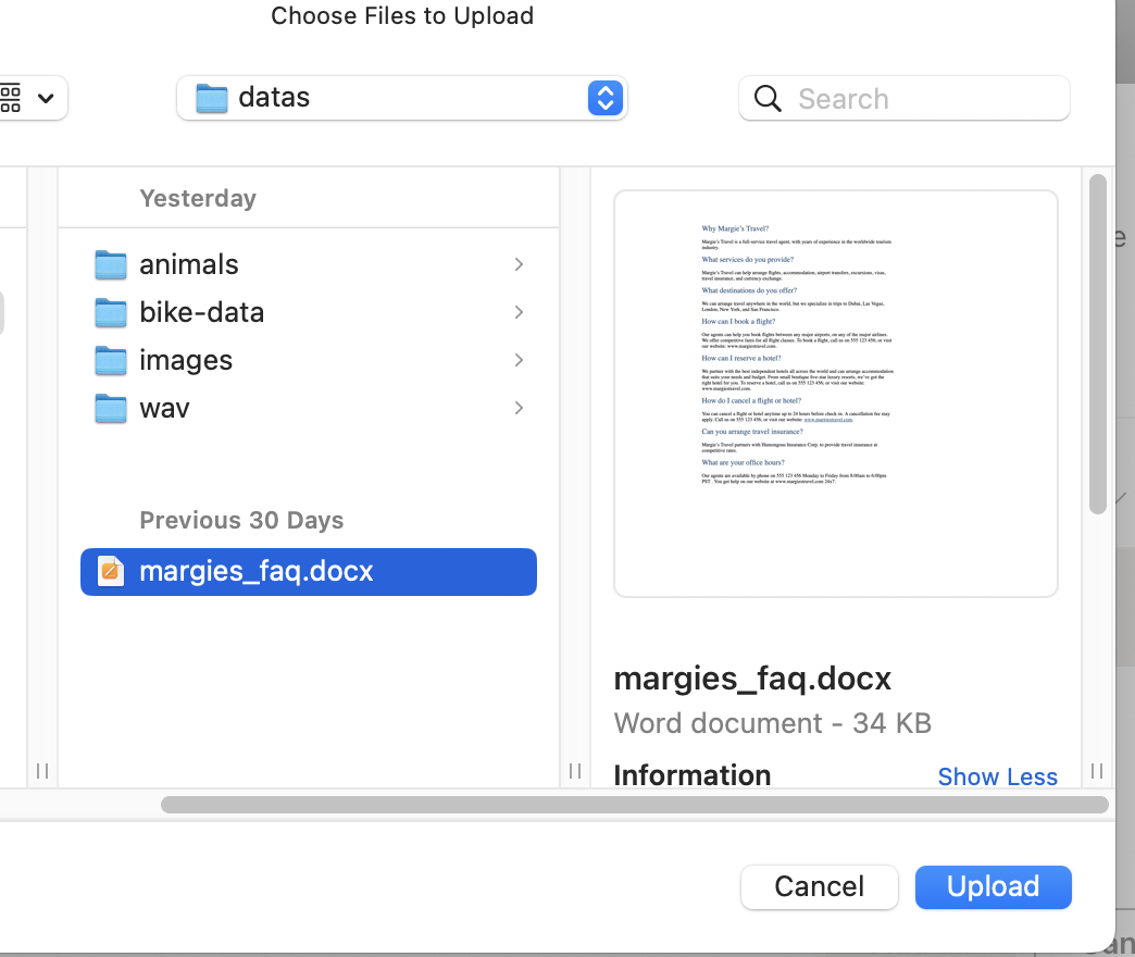원래 docx 파일은 왼쪽처럼 생겼는데 업로드하면 우측 화면처럼 자기가 질문/응답을 다 인식해서 리스트처럼 생성된다.