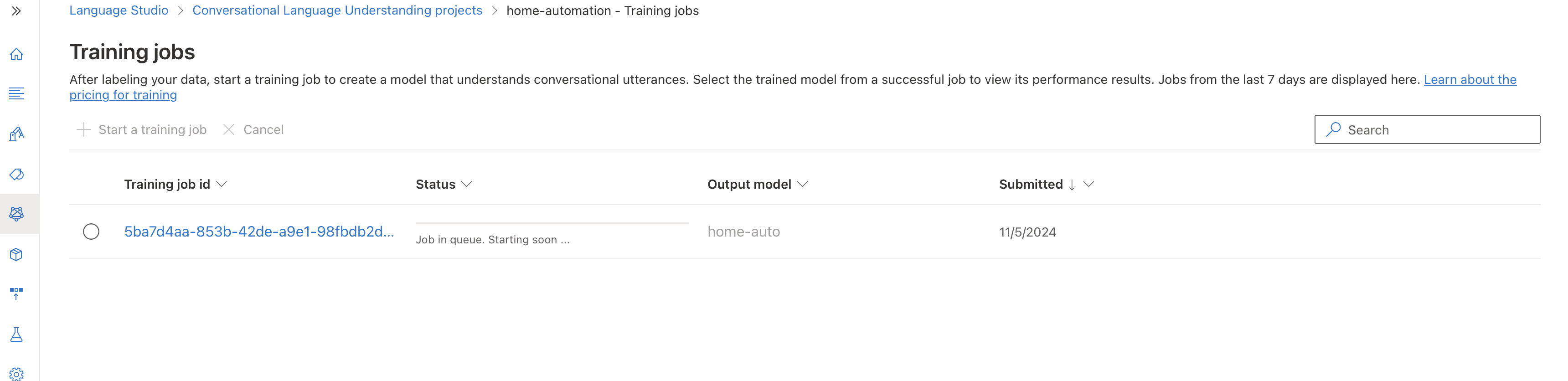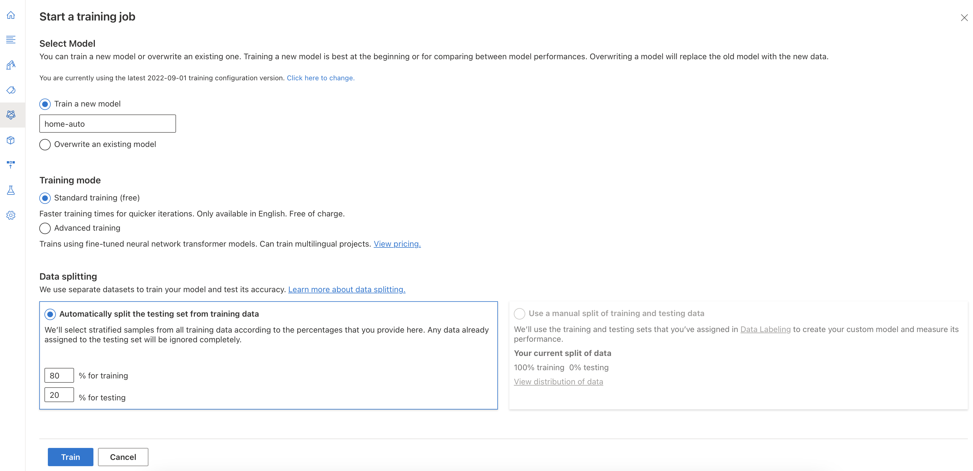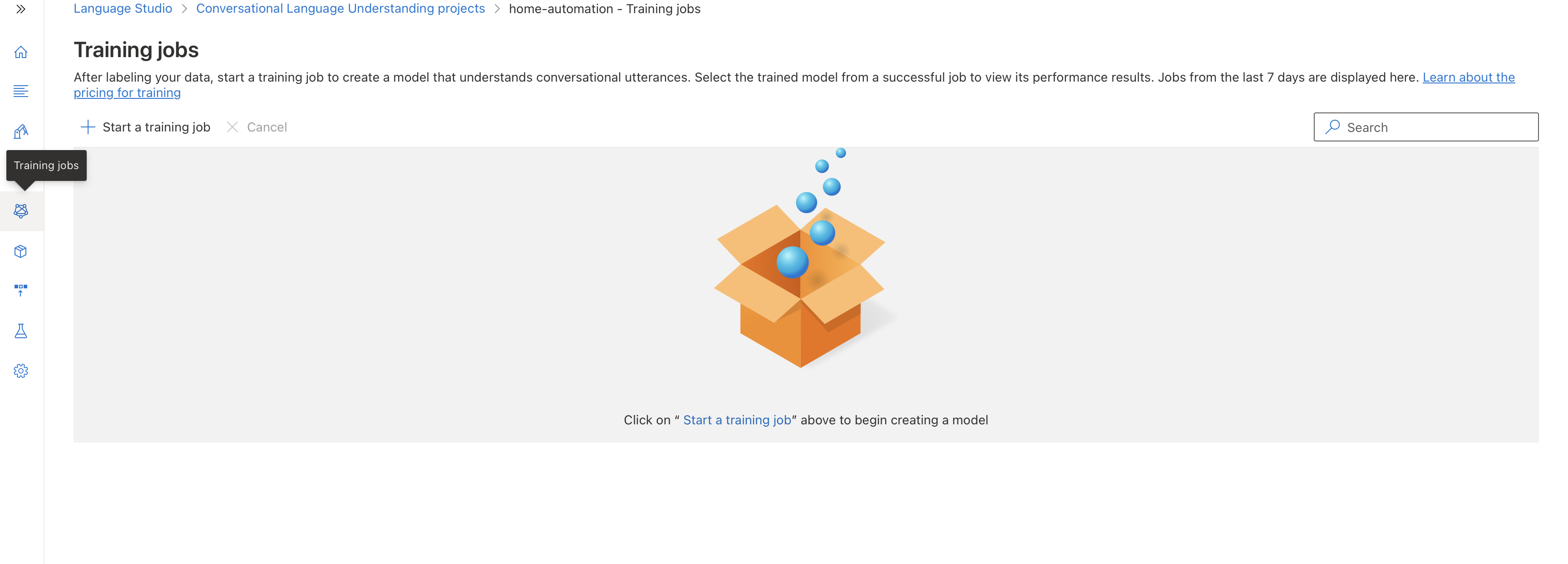 Create a new project를 클릭한 후, "Conversational Language Understanding" 옵션을 선택한다.