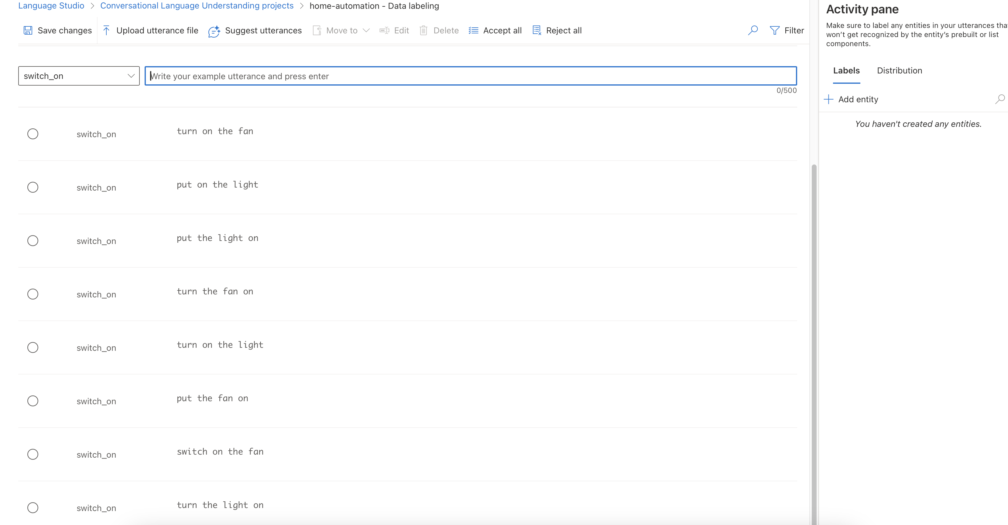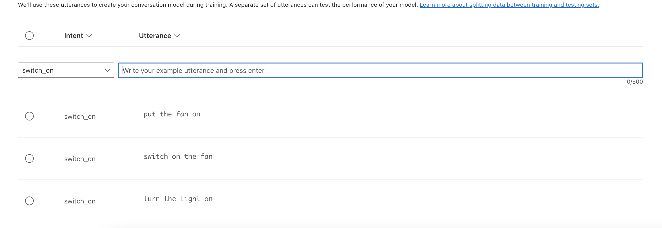 이제, 어떤 말이 오면 switch_on으로 인식할 것인지 해줄것이다.