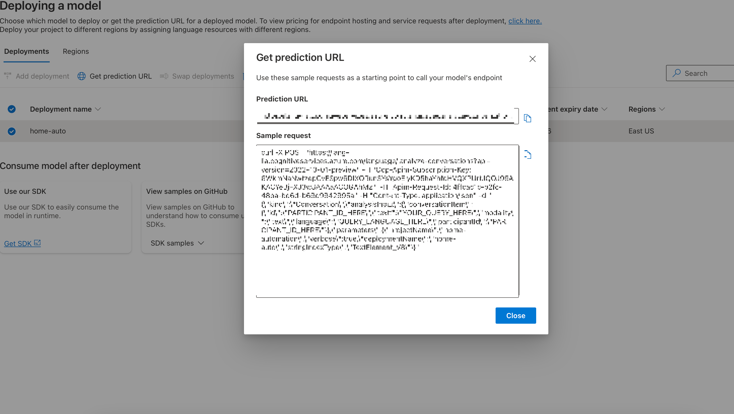 아래 모델을 체크해야지만 Get prediction URL 버튼이 활성화된다.