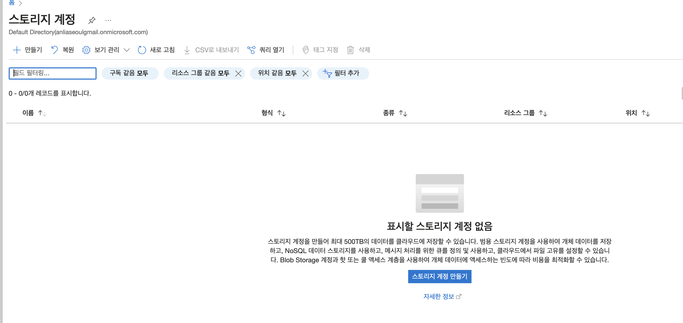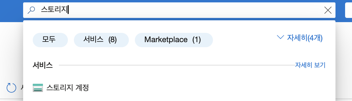 스토리지 계정을 만들것이다. 검색창에 스토리지 검색