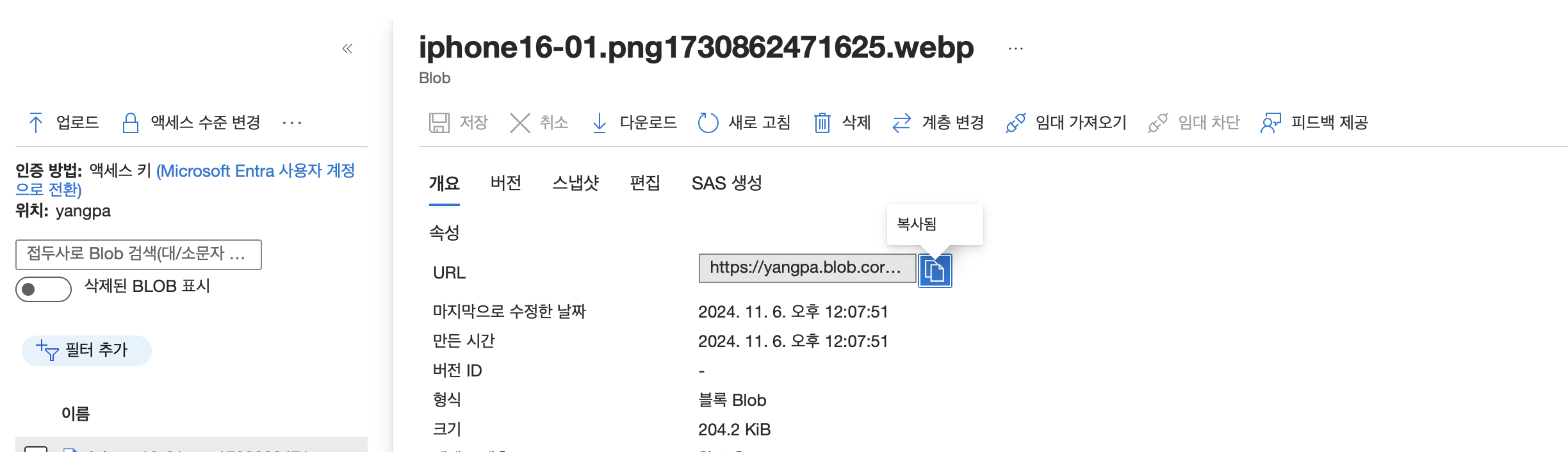 해당 이미지의 웹페이지 저장 경로를 보면 <스토리지 계정 이름>/<blob 주소>/<컨테이너>/<이미지 이름> 이렇게 구성되어있는 것이 확인된다.