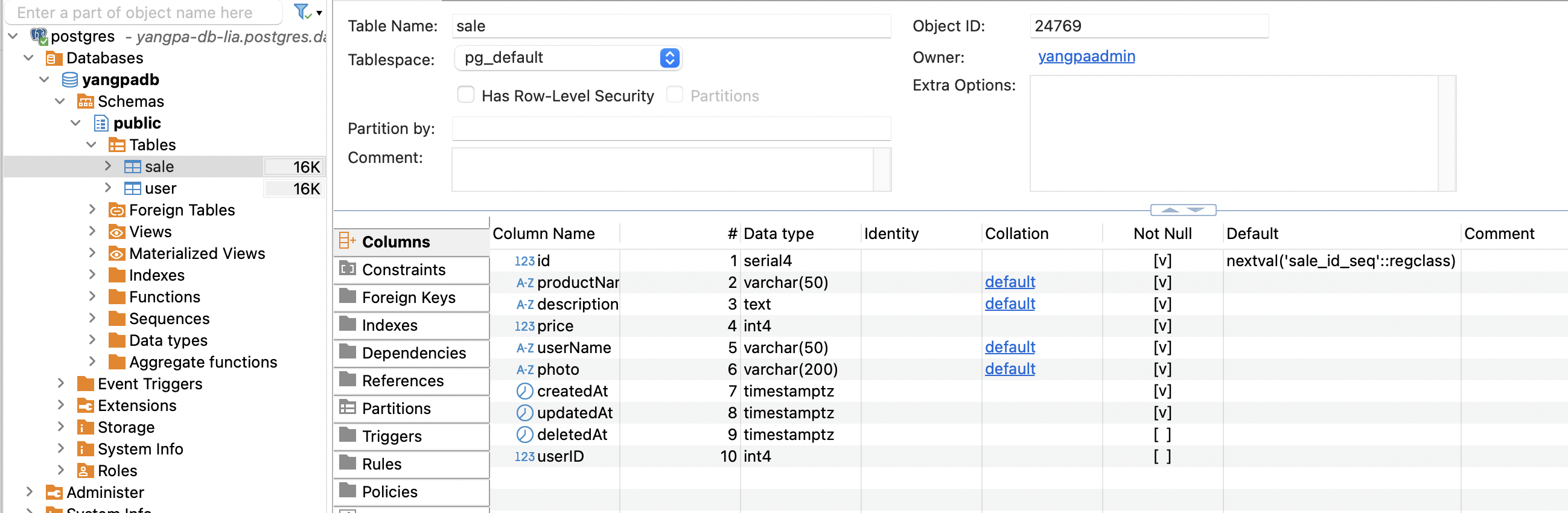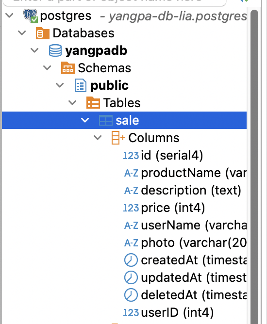 DBeaver에 가면, DB가 잘 생성된 것이 확인된다! sale, user DB 확인