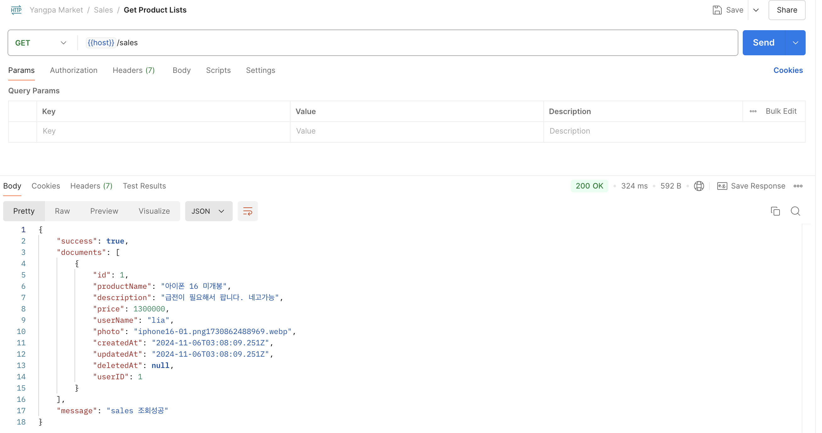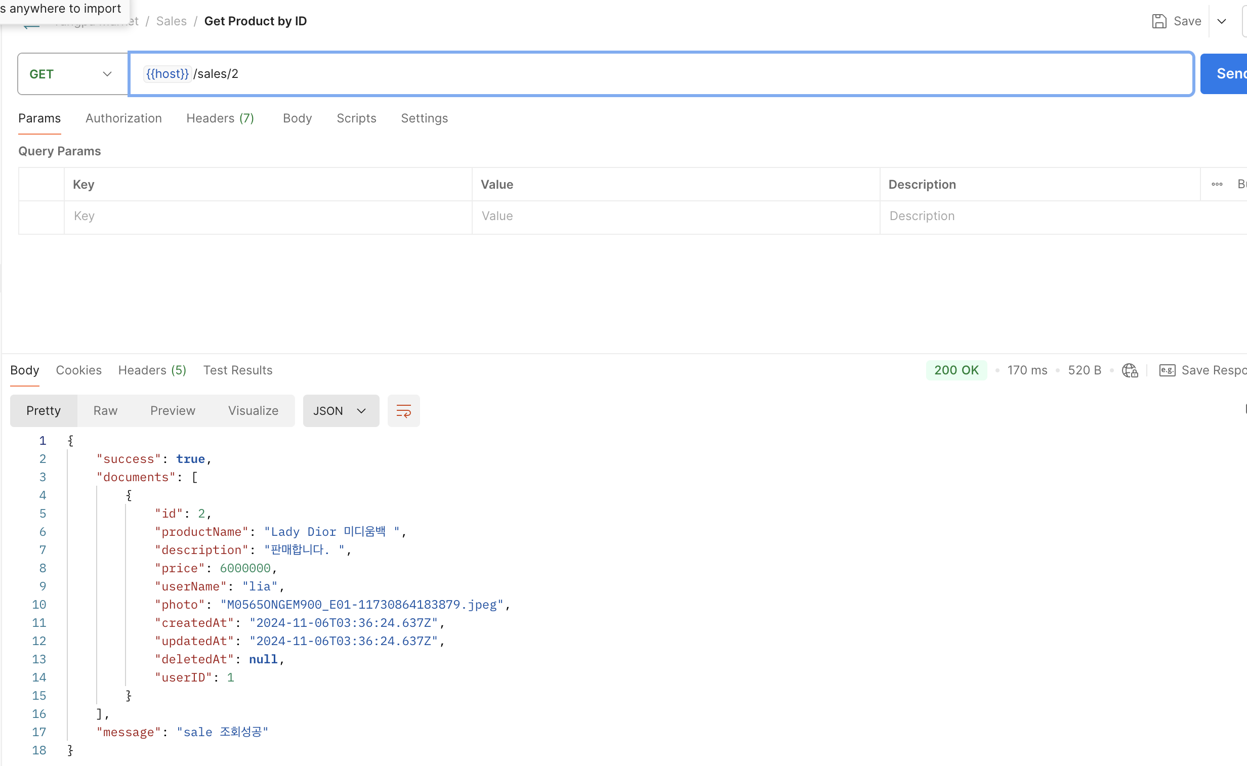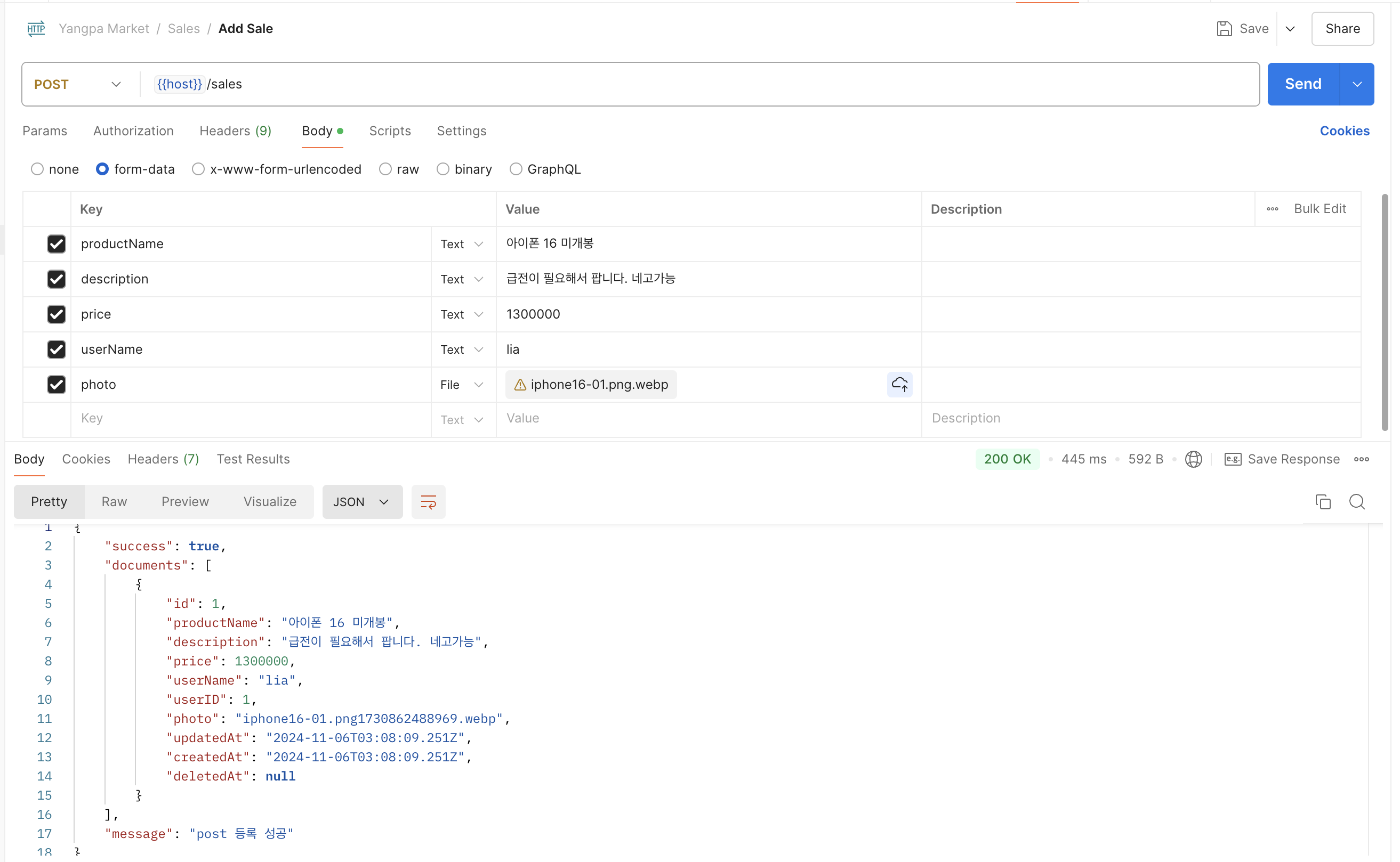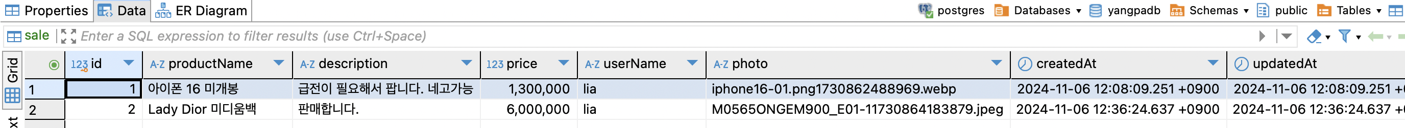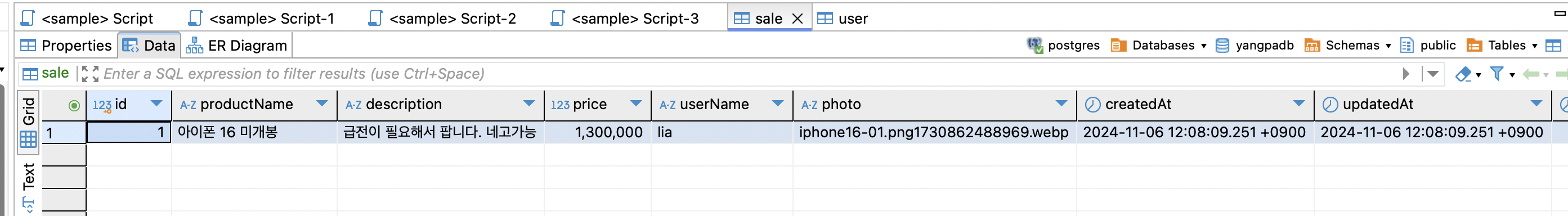 sale DB 테이블의 구성 항목을 보고 수동으로 보내주어야하는 (유저가 등록해야하는) 데이터를 Body 객체로 보내줄것이다.