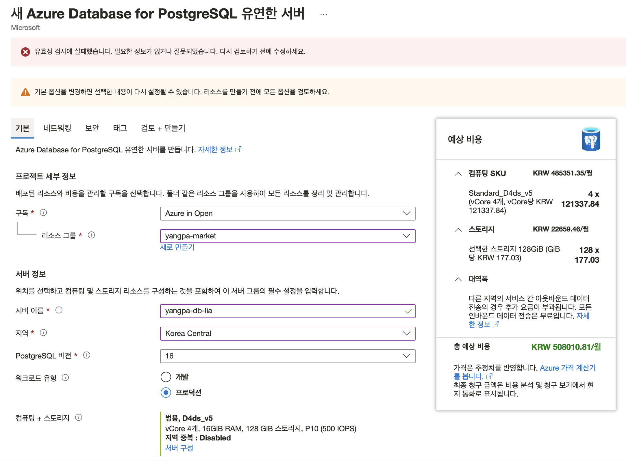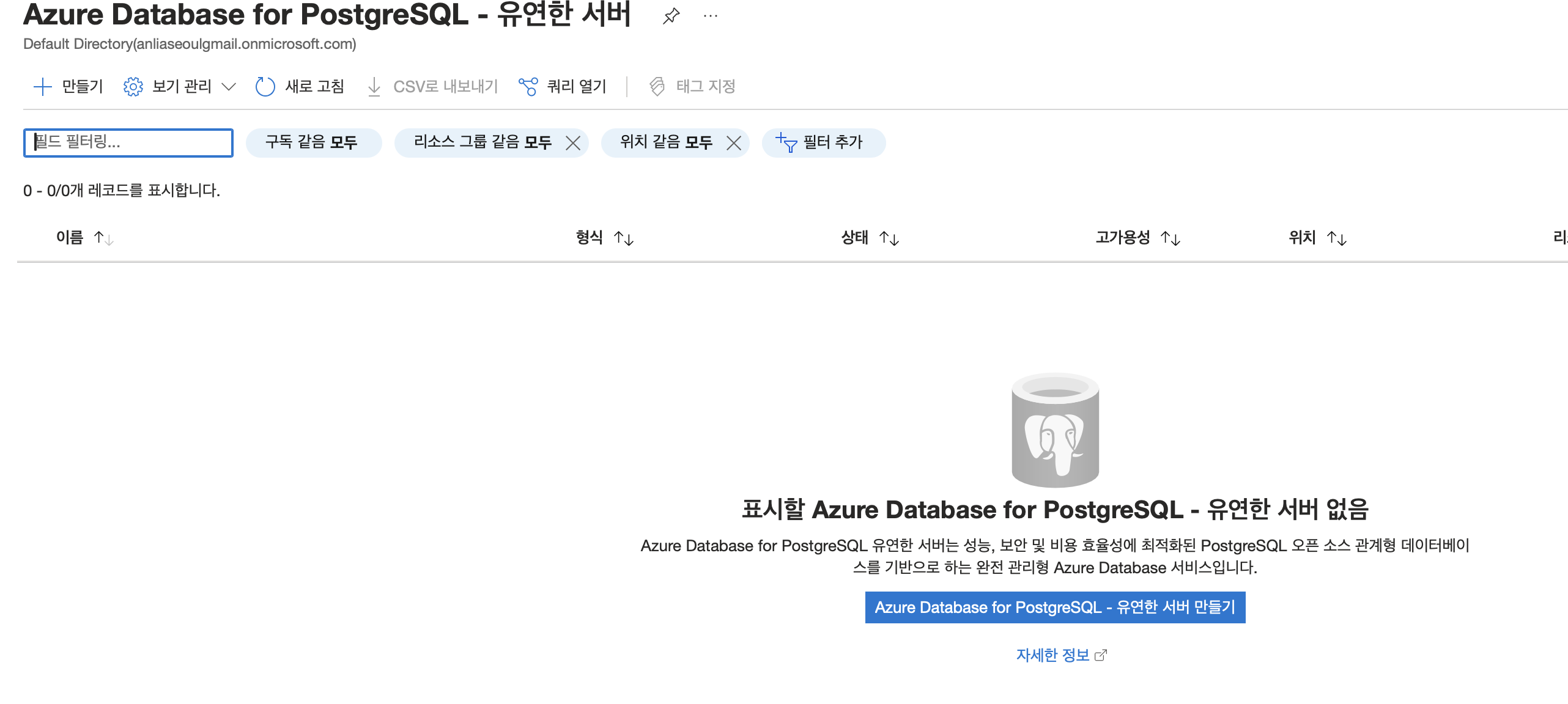 3. Azure Database for PostgreSQL - 유연한 서버 만들기 클릭