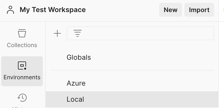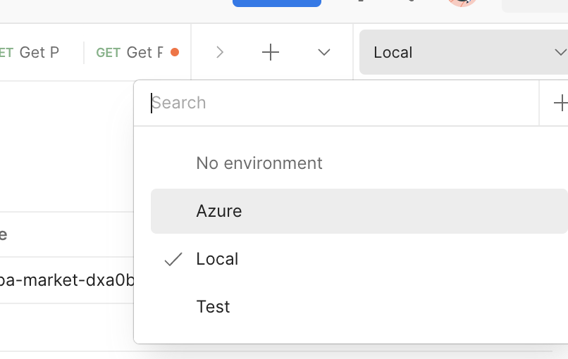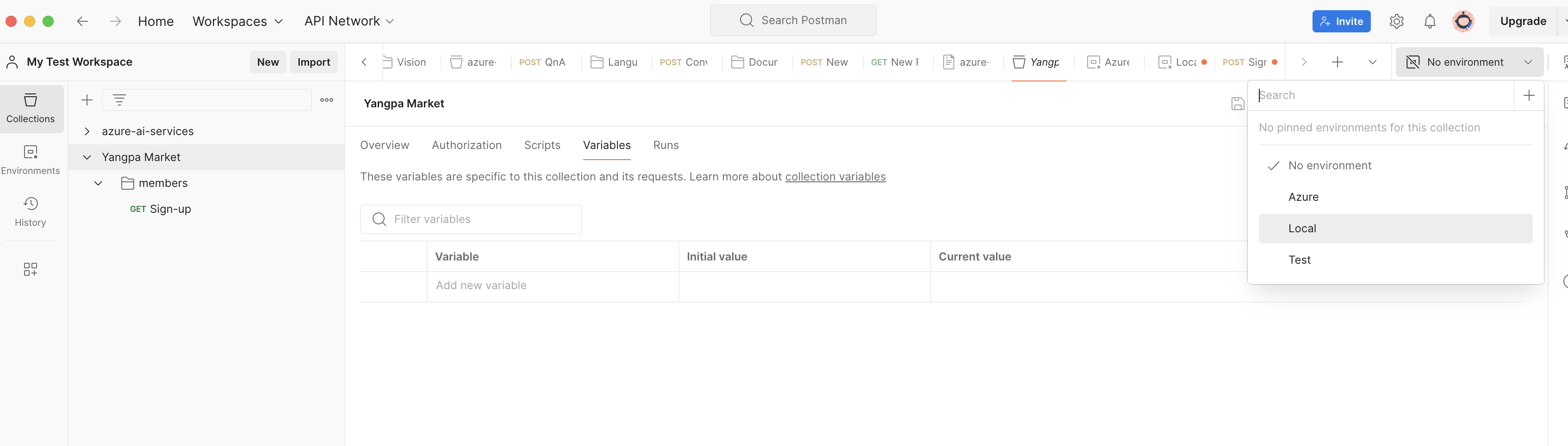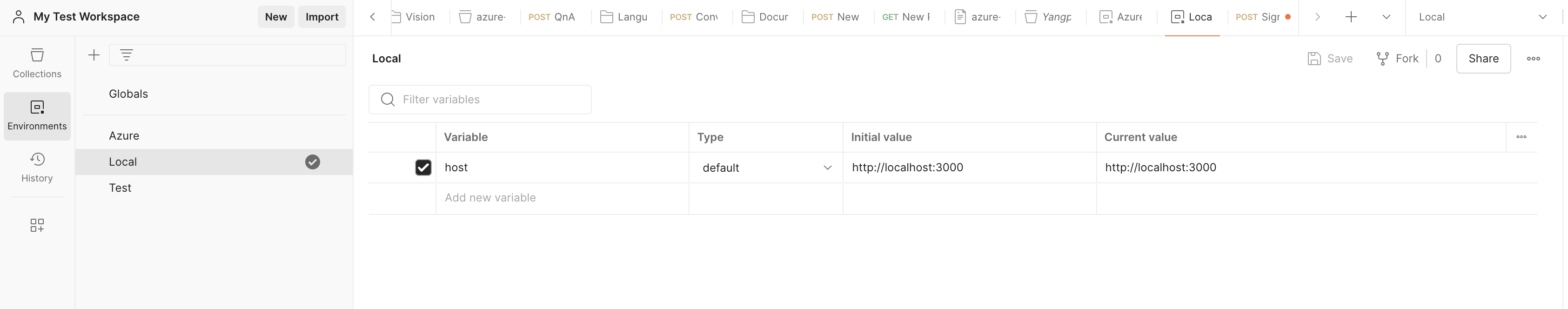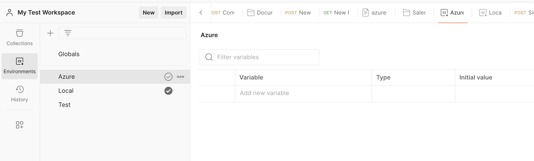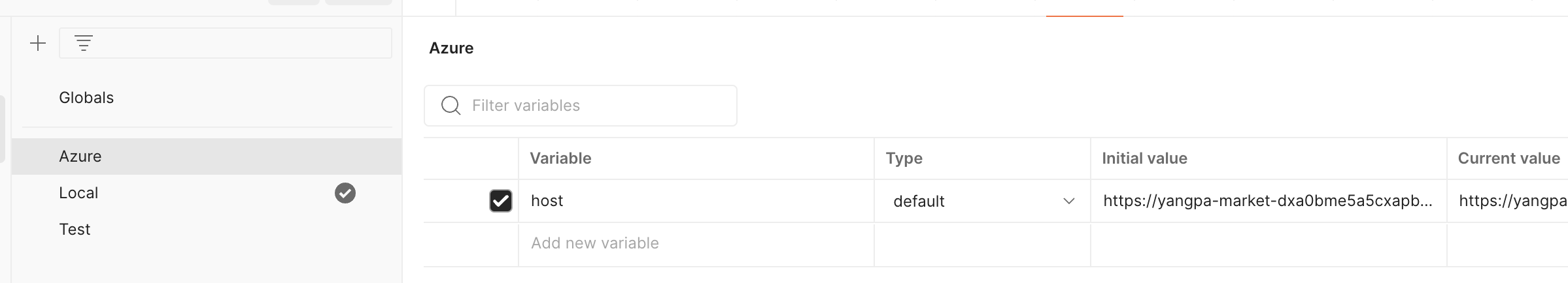 이제 Postman으로 왔으니, Azure Env. 환경을 설정해준다.