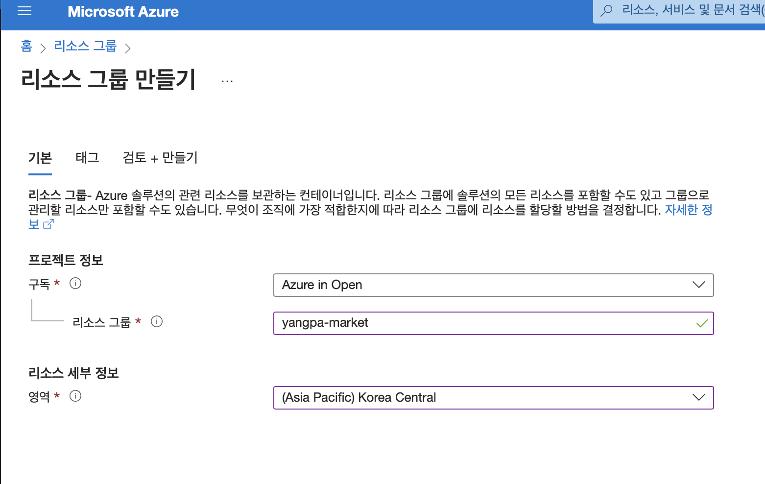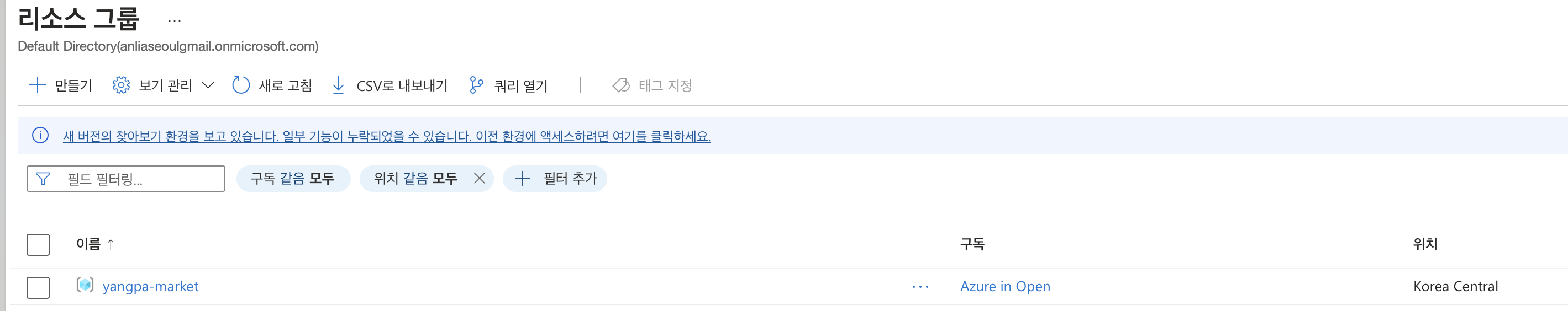 1. 먼저, Azure Portal에서 새 리소스 그룹을 만든다.