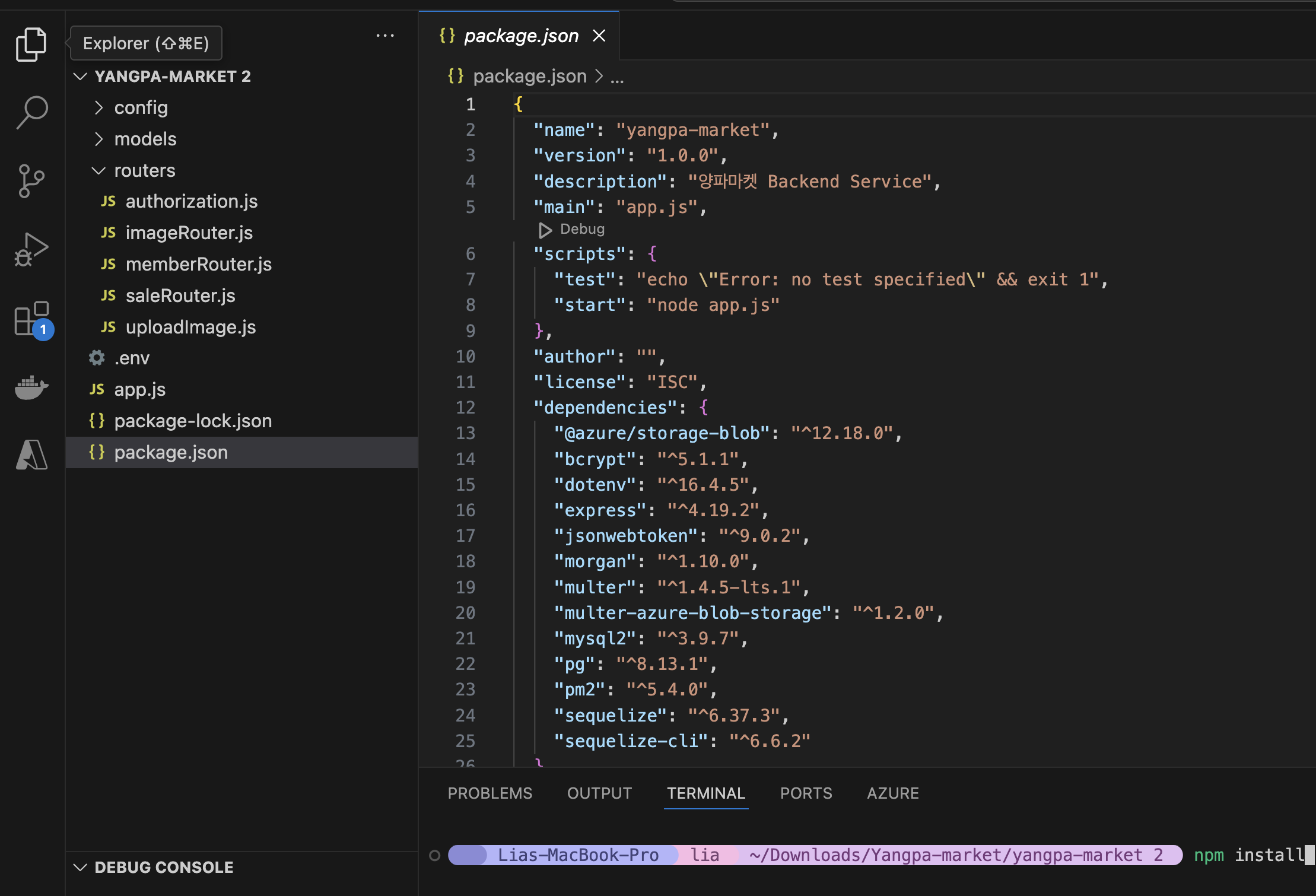 [BE] 당근마켓 아니고 양파마켓 만들기 (Azure, Postman, JS, PostgreSQL, DBeaver) 본문