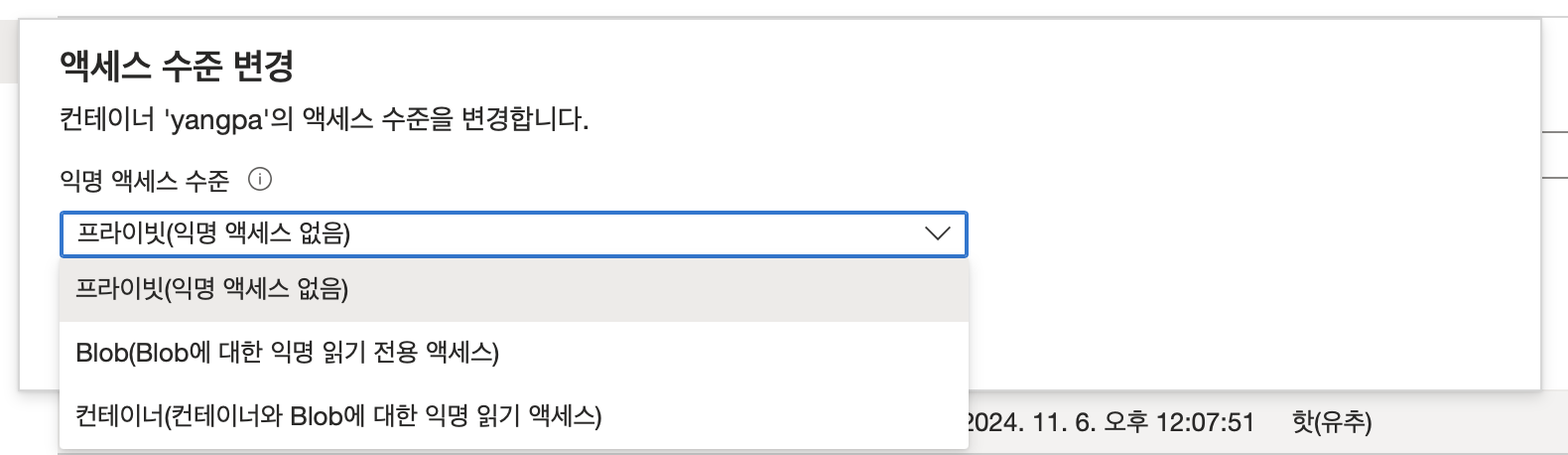 여기에서 액세스 수준 변경을 "Blob"로 해준다.