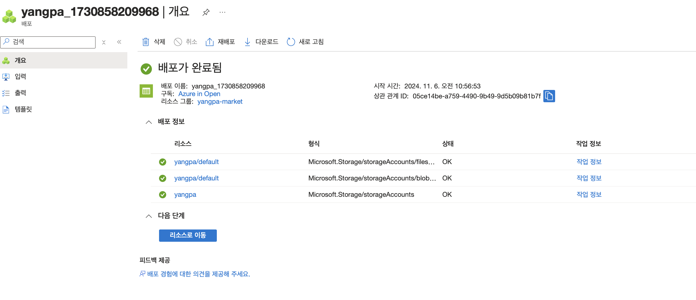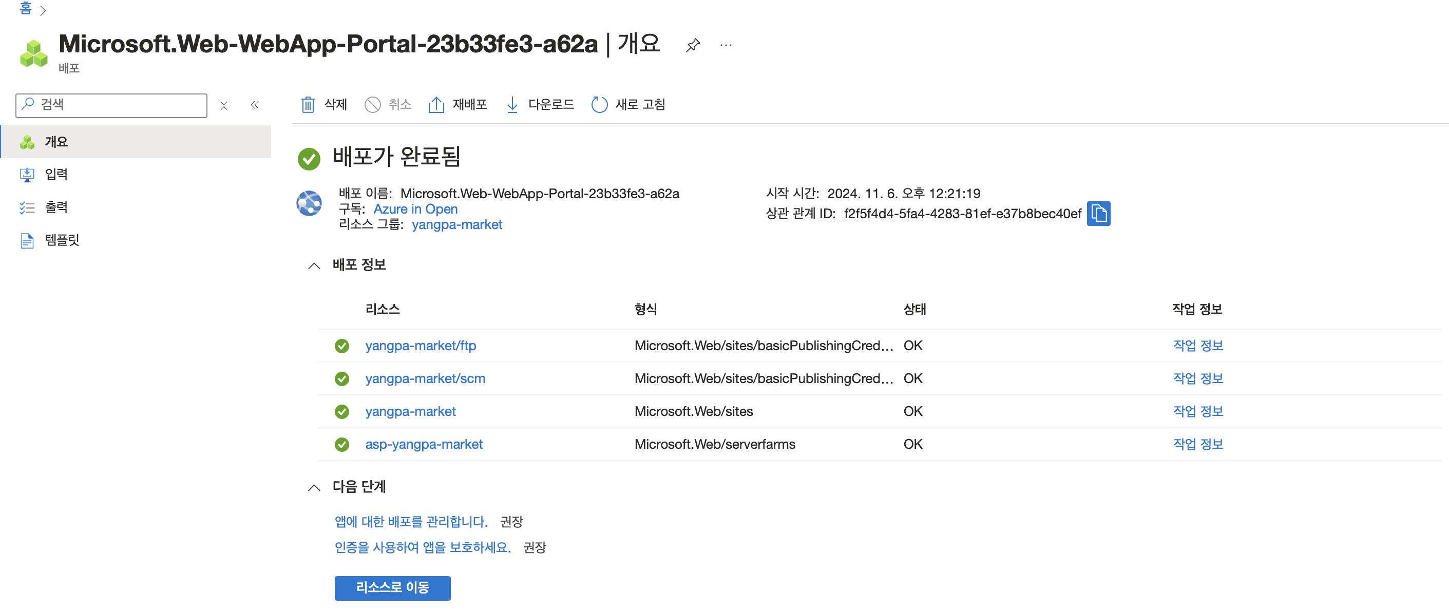 배포가 완료되면 아래와 같이 리소스들이 생길 것이다. 리소스로 이동을 선택한다.