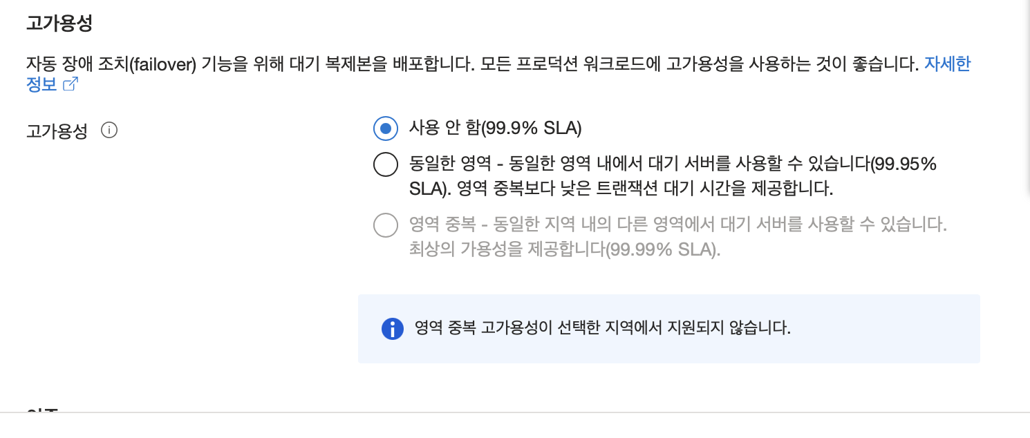 * 가용성 영역: 똑같은 기능을 하는 DB를 여러개 만든다는 뜻이다.