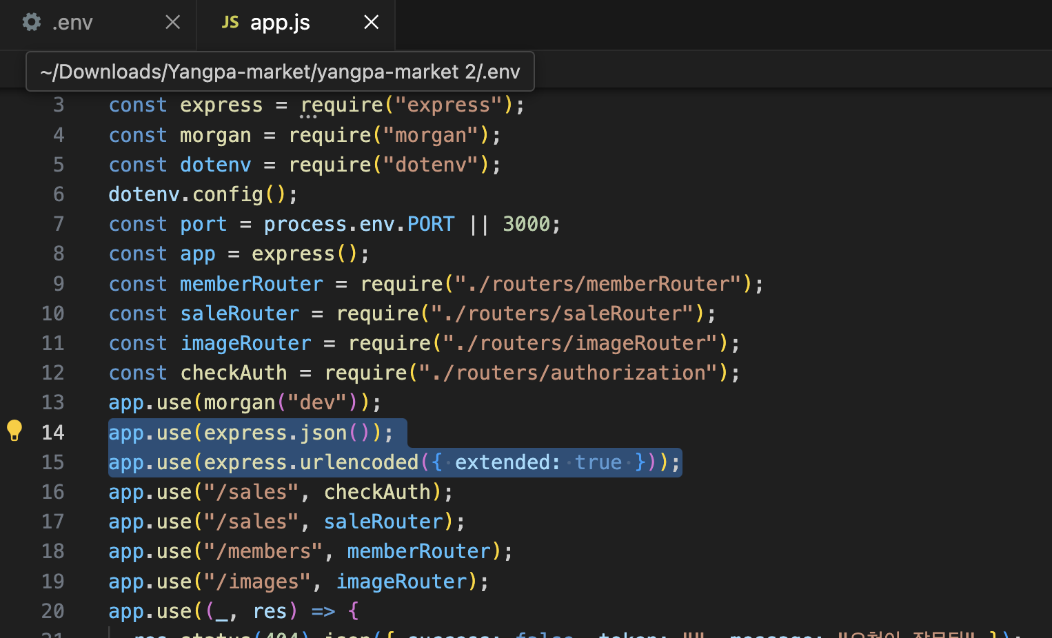 마지막으로 .env에 가서 DB 커넥션 관련한 모든 변수들을 잊지 않도록 다 저장해준다.