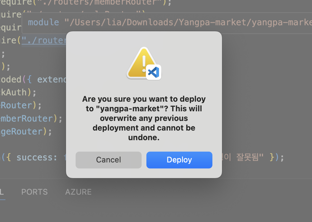 배포를 기다리는 동안 필요한 패키지를 모두 설치해주기 위해 npm install 입력해준다.