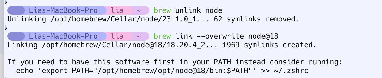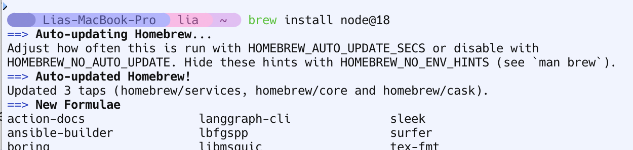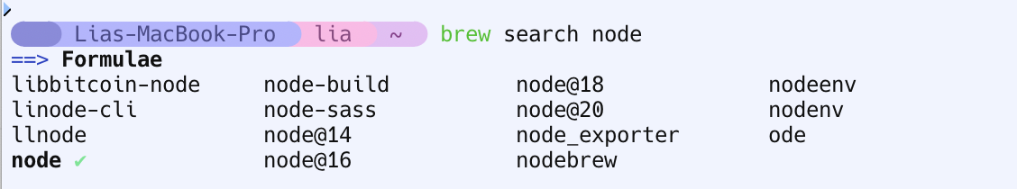 node가 깔려있다. 처음에 brew로 노드를 버전 지정없이 그냥 깔아버려서 그런가보다.