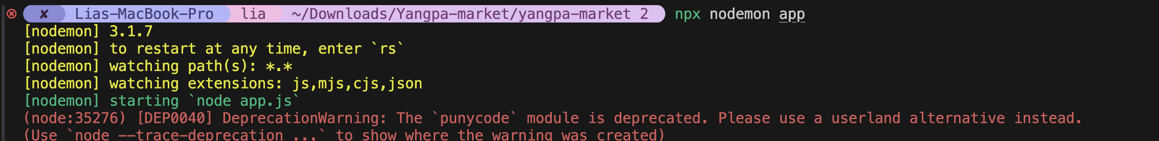 (node:35276) [DEP0040] DeprecationWarning: The `punycode` module is deprecated. Please use a userland alternative instead. 에러 해결법
