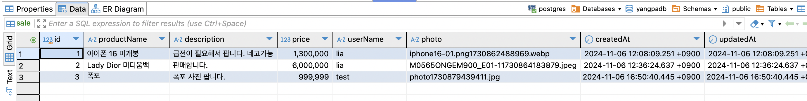2024.11.06 - [Backend] - [BE] 당근마켓 아니고 양파마켓 만들기 (Azure, Postman, JS, PostgreSQL, DBeaver)