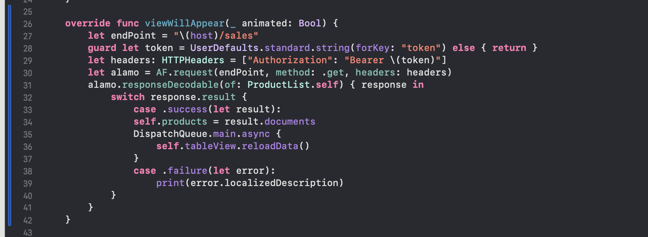 guard let token = UserDefaults.standard.string(forKey: "token") else { return }