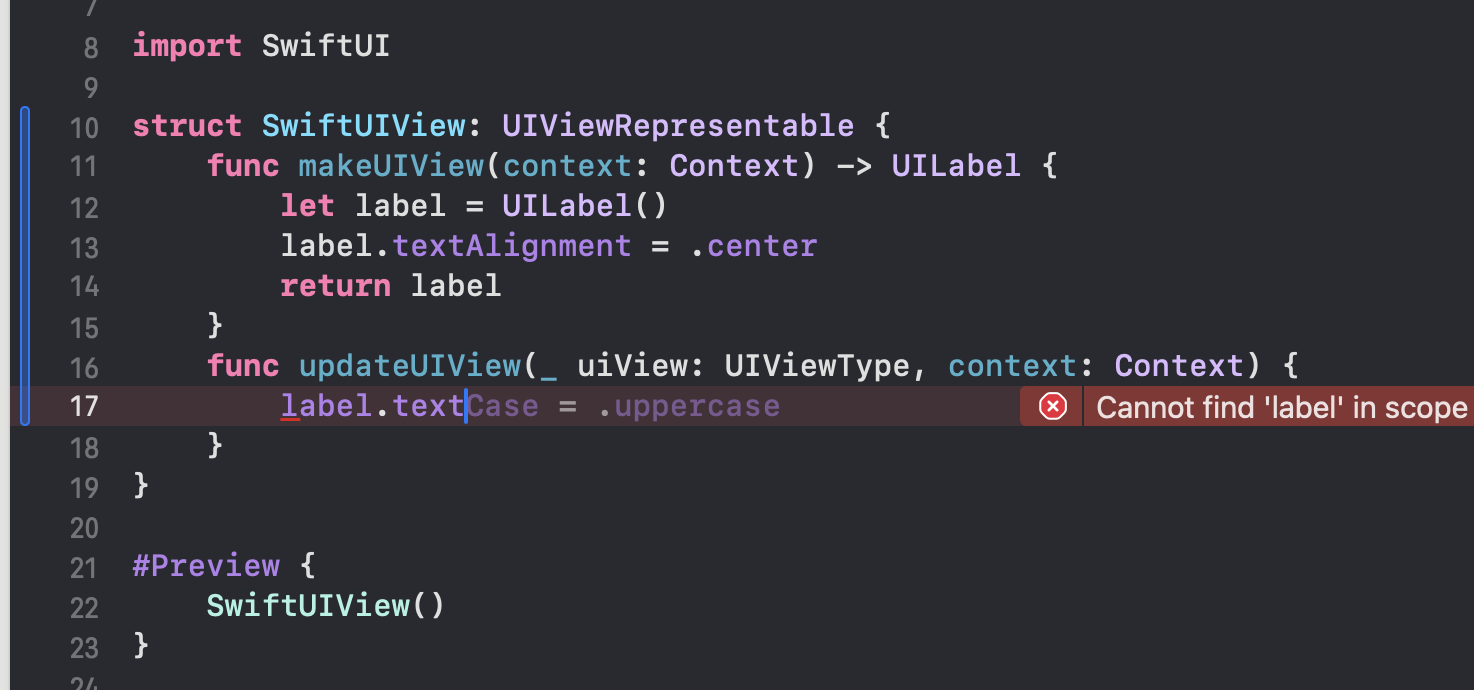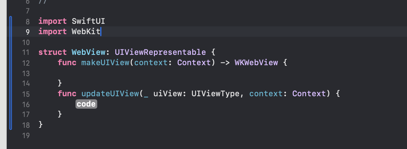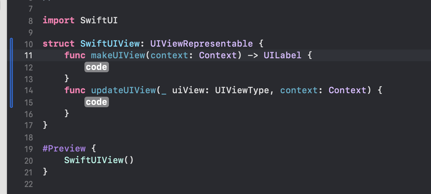 UIView를 SwiftUI 에서 쓰려면 UIViewRepresentable 프로토콜을 적용해주어야한다.