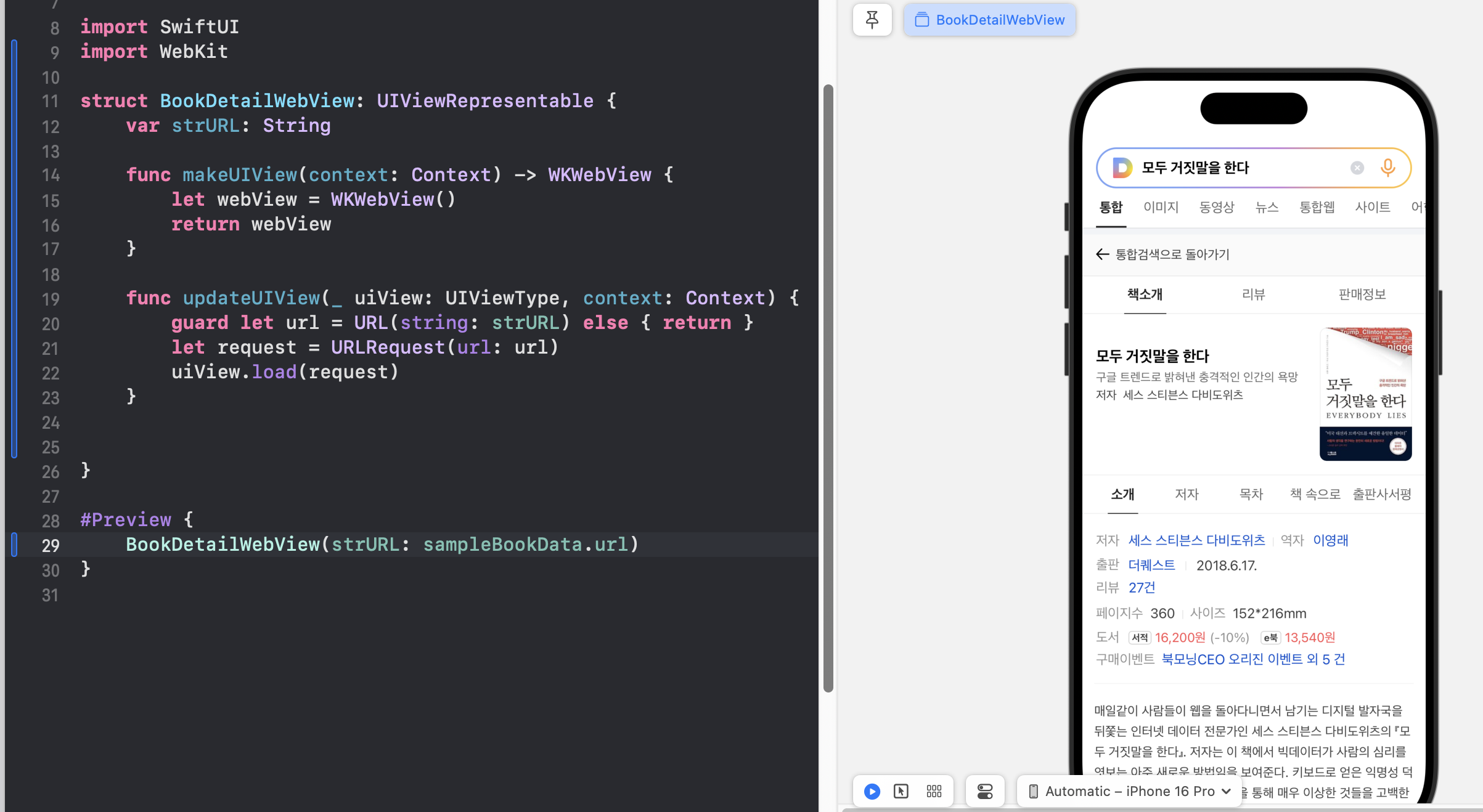 2024.09.09 - [앱 개발/iOS] - KakaoAPI를 활용한 BookSearch 앱 만들기 (2)
