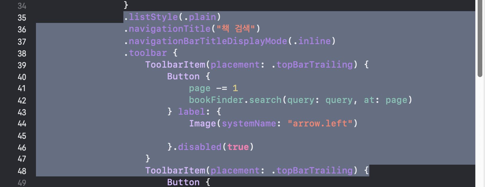 .navigationTitle("책 검색")