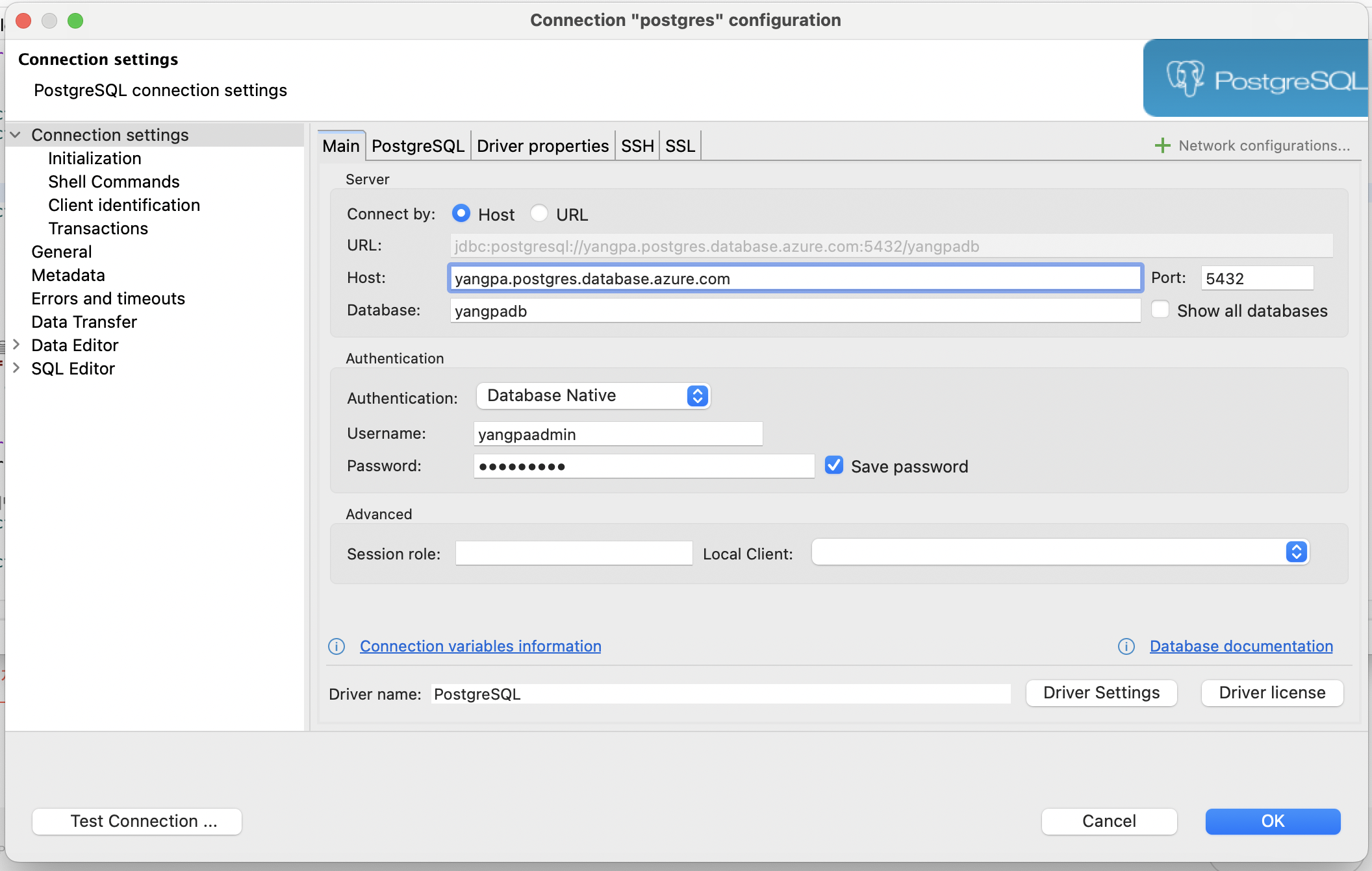 이제 postgres에서 위와 같은 값으로 서버를 바꿔준다.