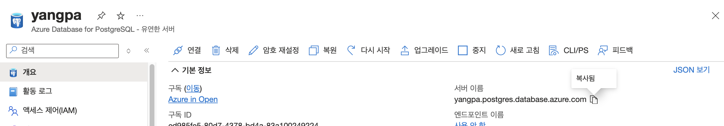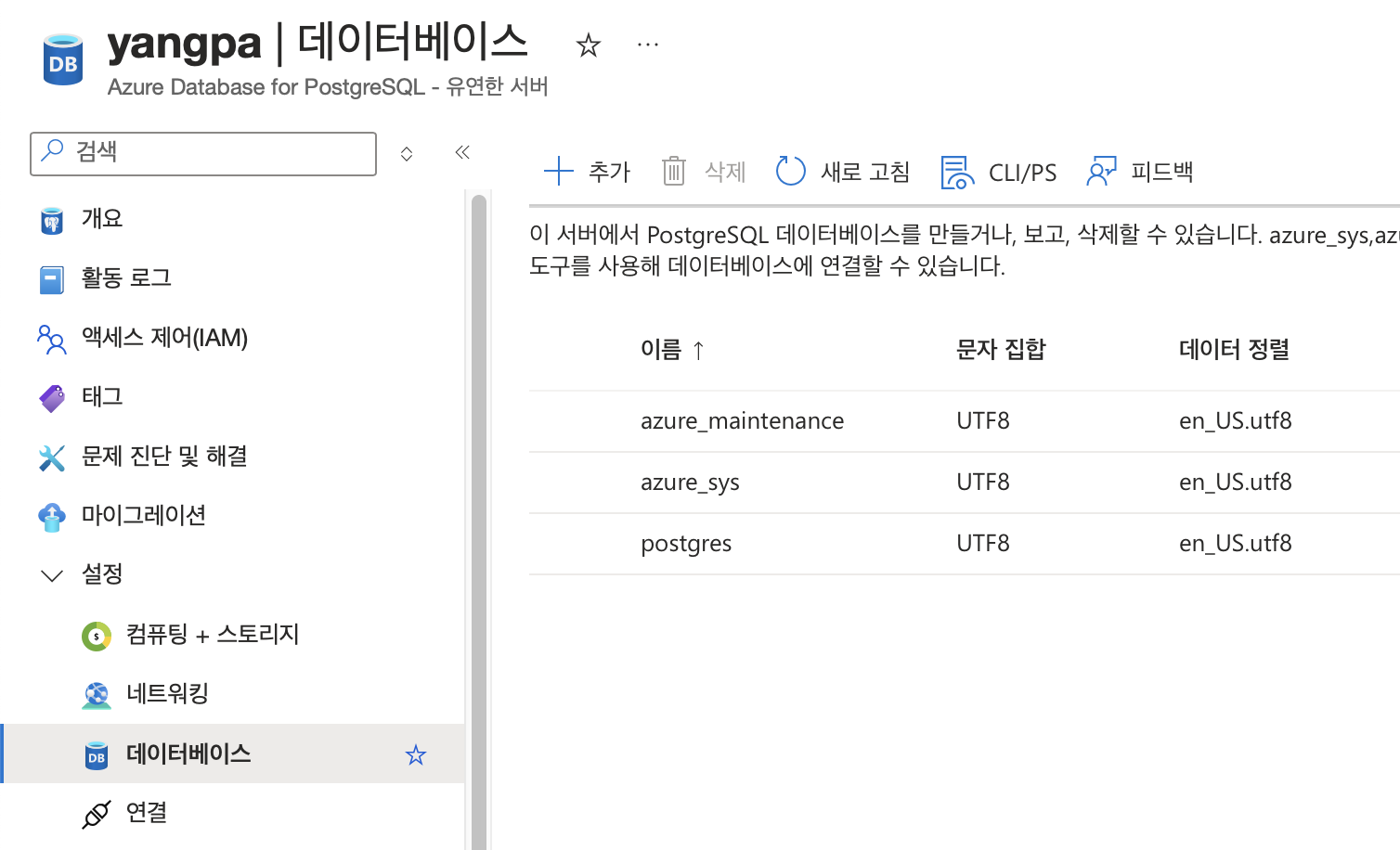 많은 내용을 담고있기 때문에.. 아무것도 없이 만드는건 아니고 기본적인 데이터와 계정을 갖고 있다는 전제 하에 작성하는 포스팅이다. 우선 애져에 데이터베이스 연결을 해줄것이다.리소스