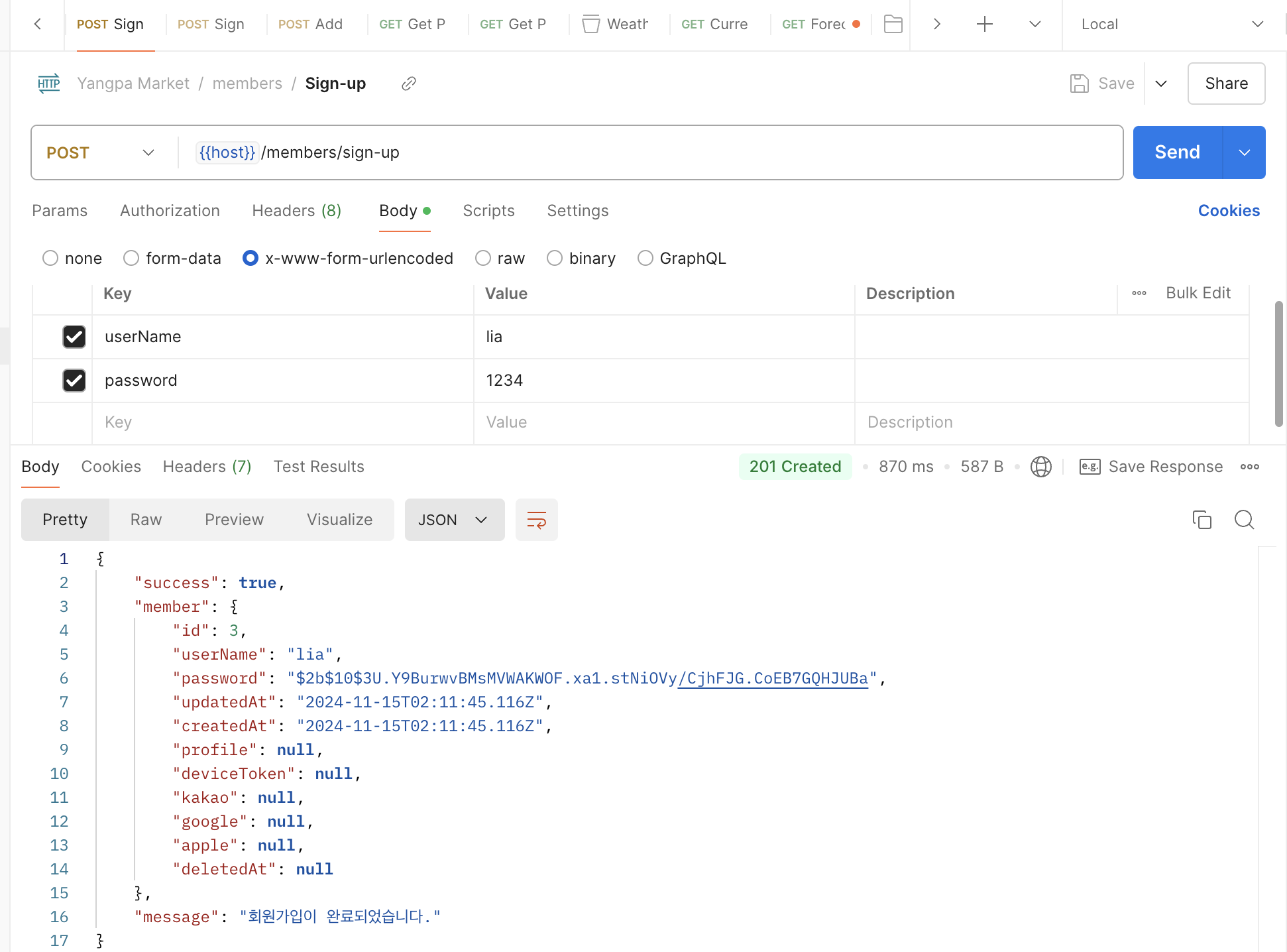 이어서 로그인까지 테스트