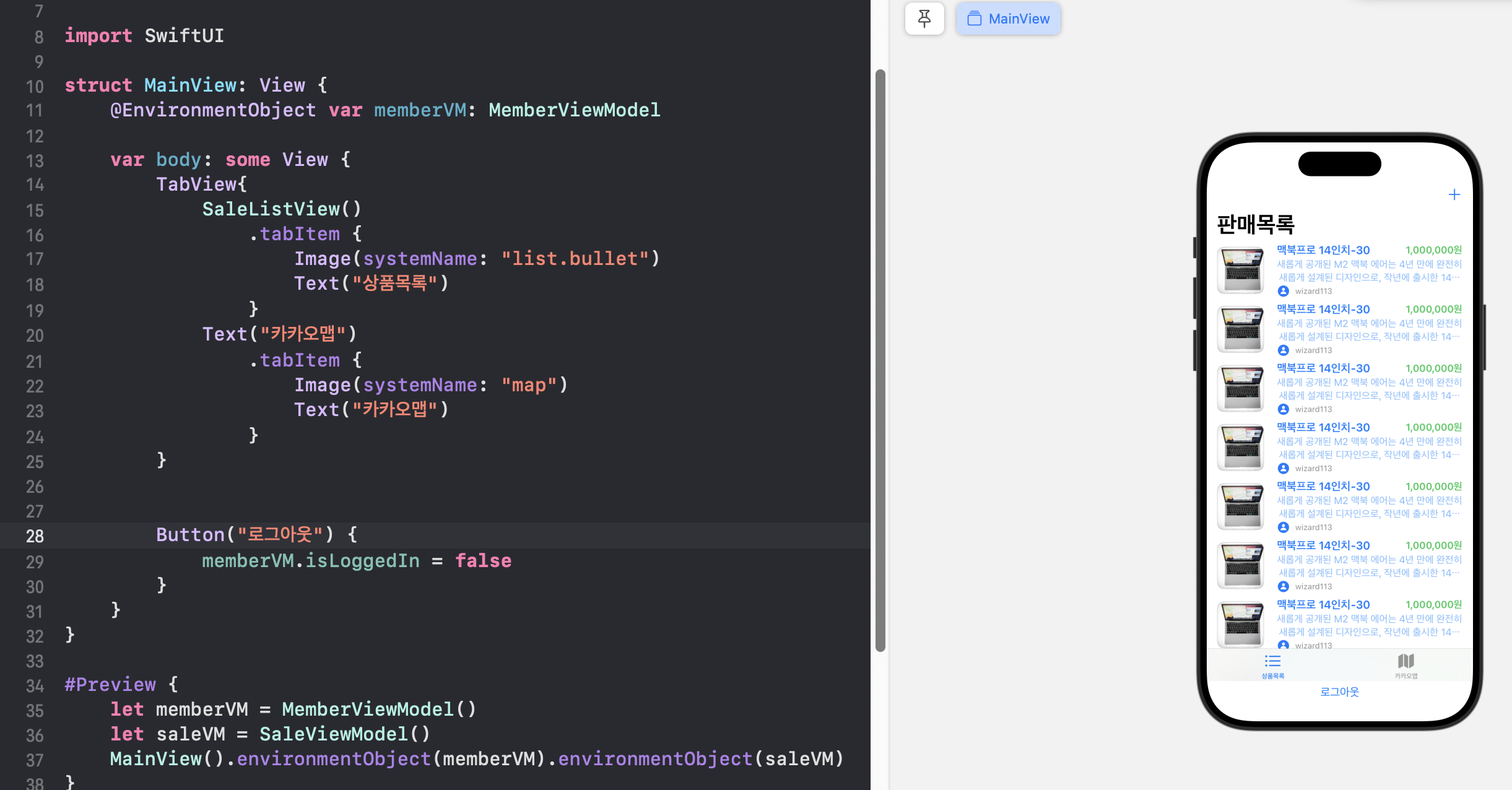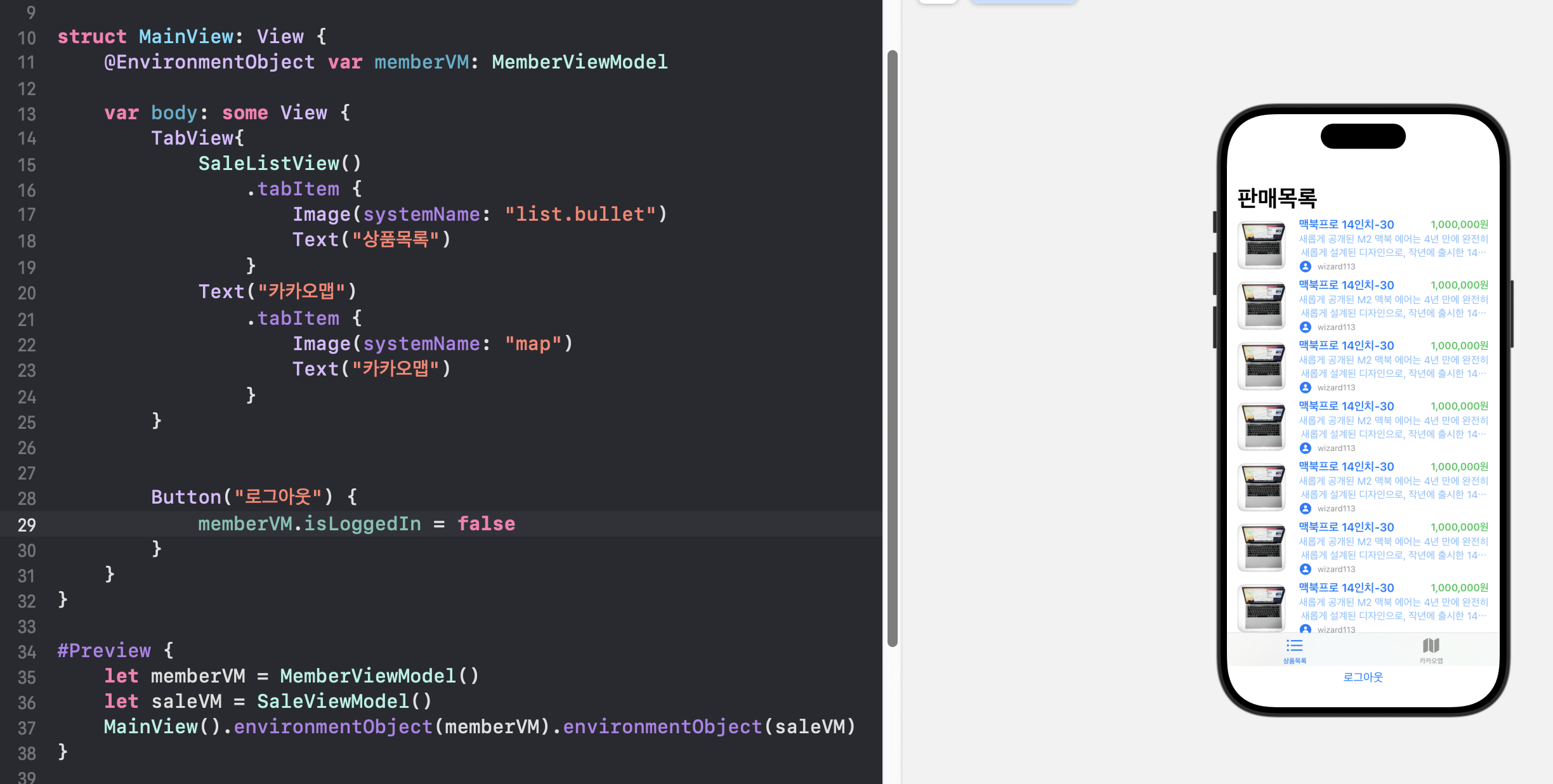 2024.11.15 - [앱 개발/iOS] - [SwiftUI ver] 당근마켓 거래서비스 풀스택 구현하기 (Frontend) - 로그인, 회원가입, 상품 리스트 업데이트 [SwiftUI ver] 당근마켓 거래서비스 풀스택 구현하기 (Frontend) - 로그인,