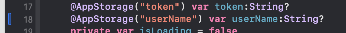 따라서 위의 token 변수의 AppStorage 프로퍼티 랩퍼 밑에 선언해주고,