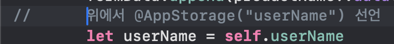 만약 self.userName = "wizard" 라고 하면 @AppStorage("userName") var userName:String? 에다가 값을 적어주는 것이다.