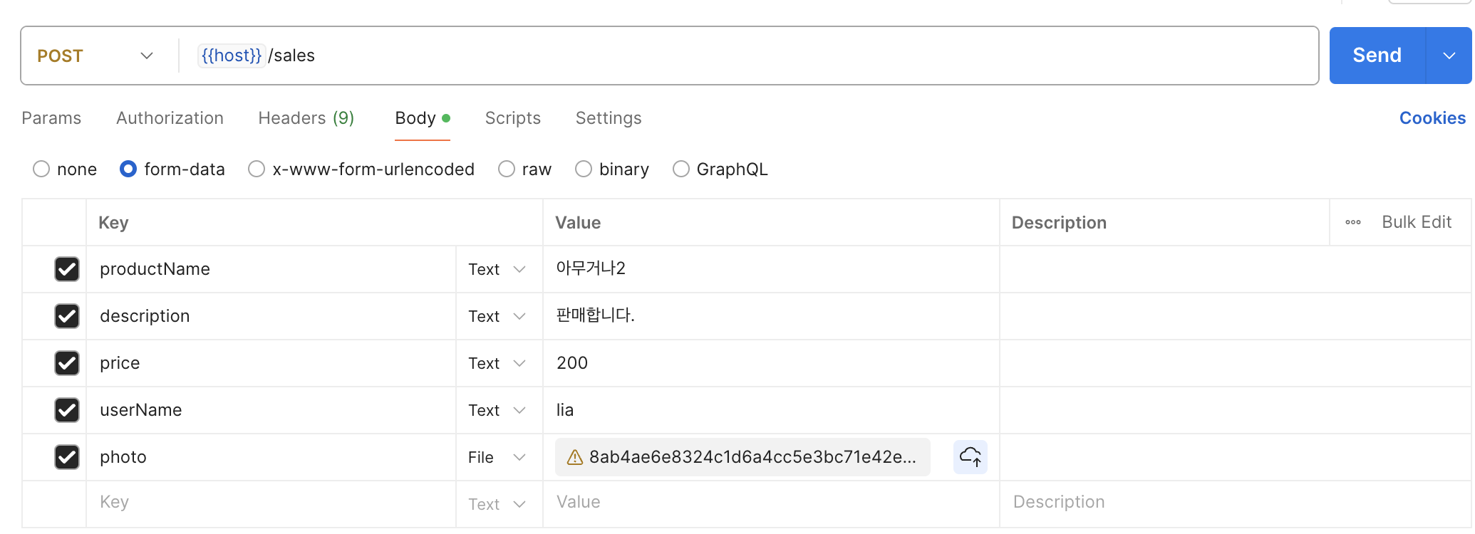 formData.append(productName!.data(using: .utf8)!, withName: "description")