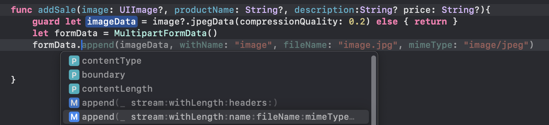 formData.append(imageData, withName: "photo", fileName: "photo.jpg", mimeType: "image/jpeg")