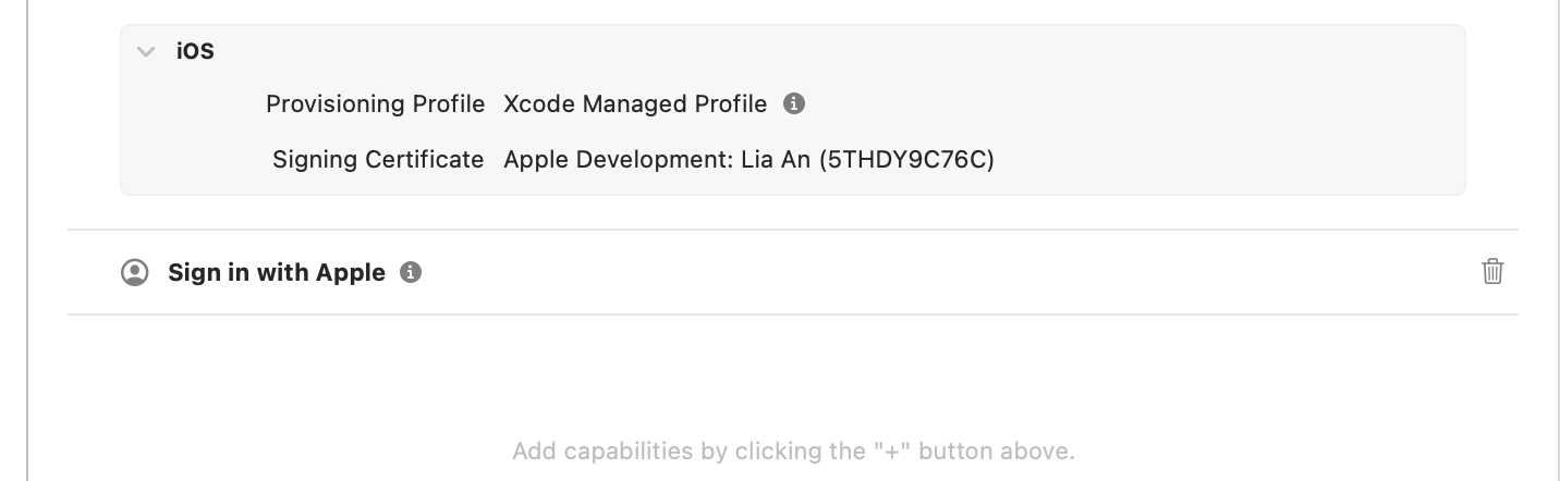 + Capability를 클릭해서 Sign in with Apple ID를 클릭한다.