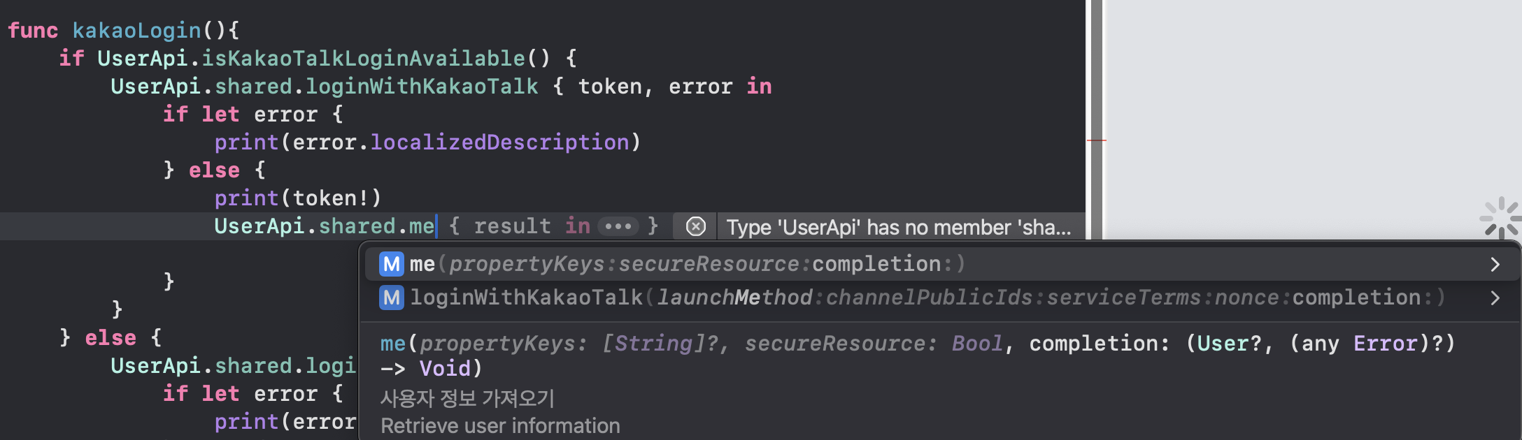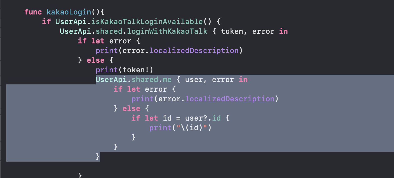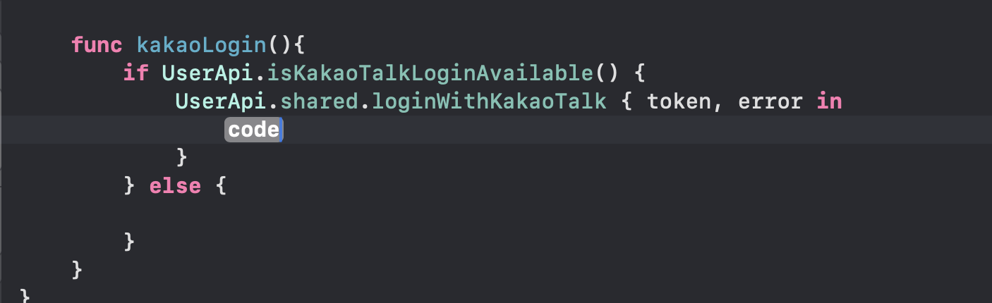 UserApi.shared.loginWithKakaoTalk { token, error in