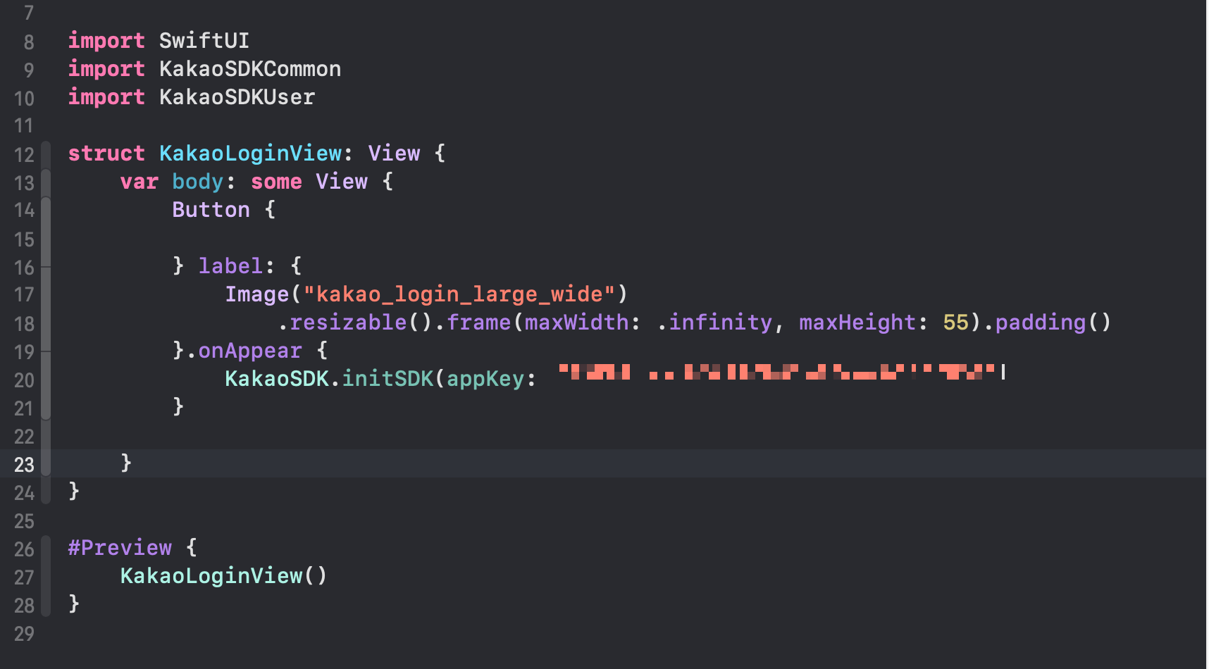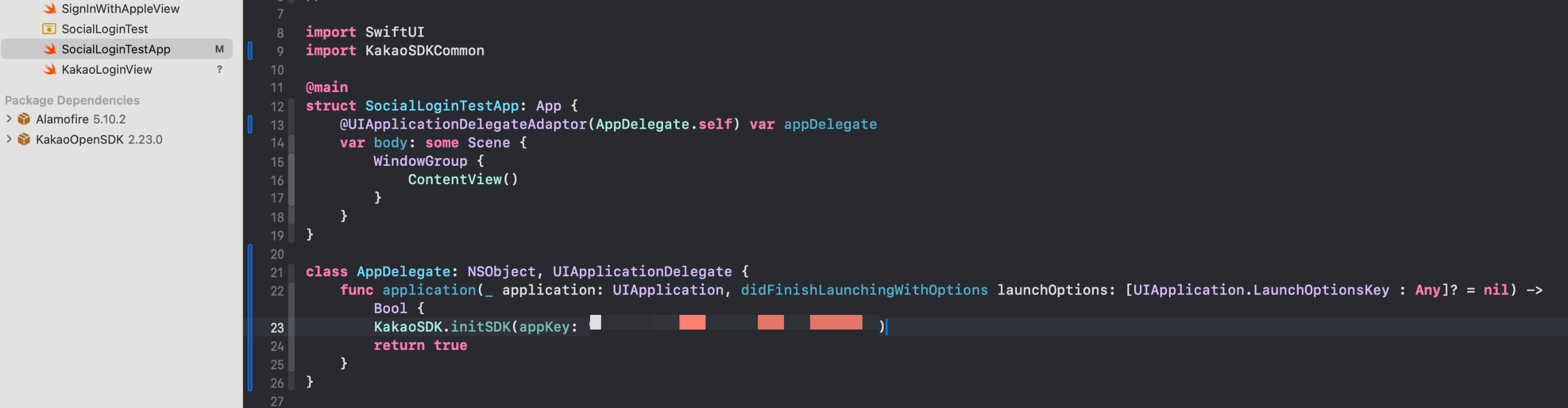 그리고 application 안에 아까 .onAppear 함수 안의 initSDK()를 복붙해서 넣어준다.