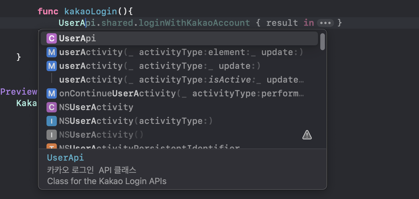 그리고 UserA..pi..라고 치면 카카오 라이브러리에서 제공하는 모듈이 있다.