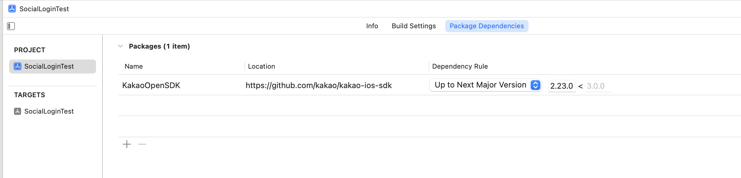 No such module.... 라고 하면서 카카오 라이브러리를 못찾길래 다시 삭제했다가 spm을 재설치하면서 타겟 설정을 프로젝트로 제설정해주었다.