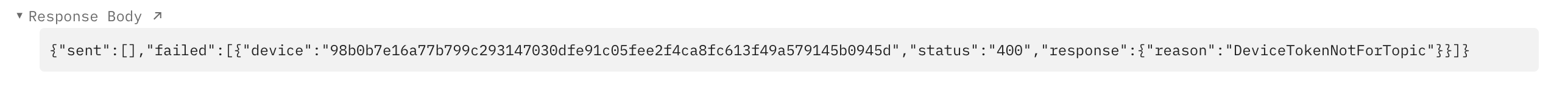 그렇지 않으면 400 코드가 뜨면서 DeviceTokenNotForTopic 에러가 뜰 것이다.