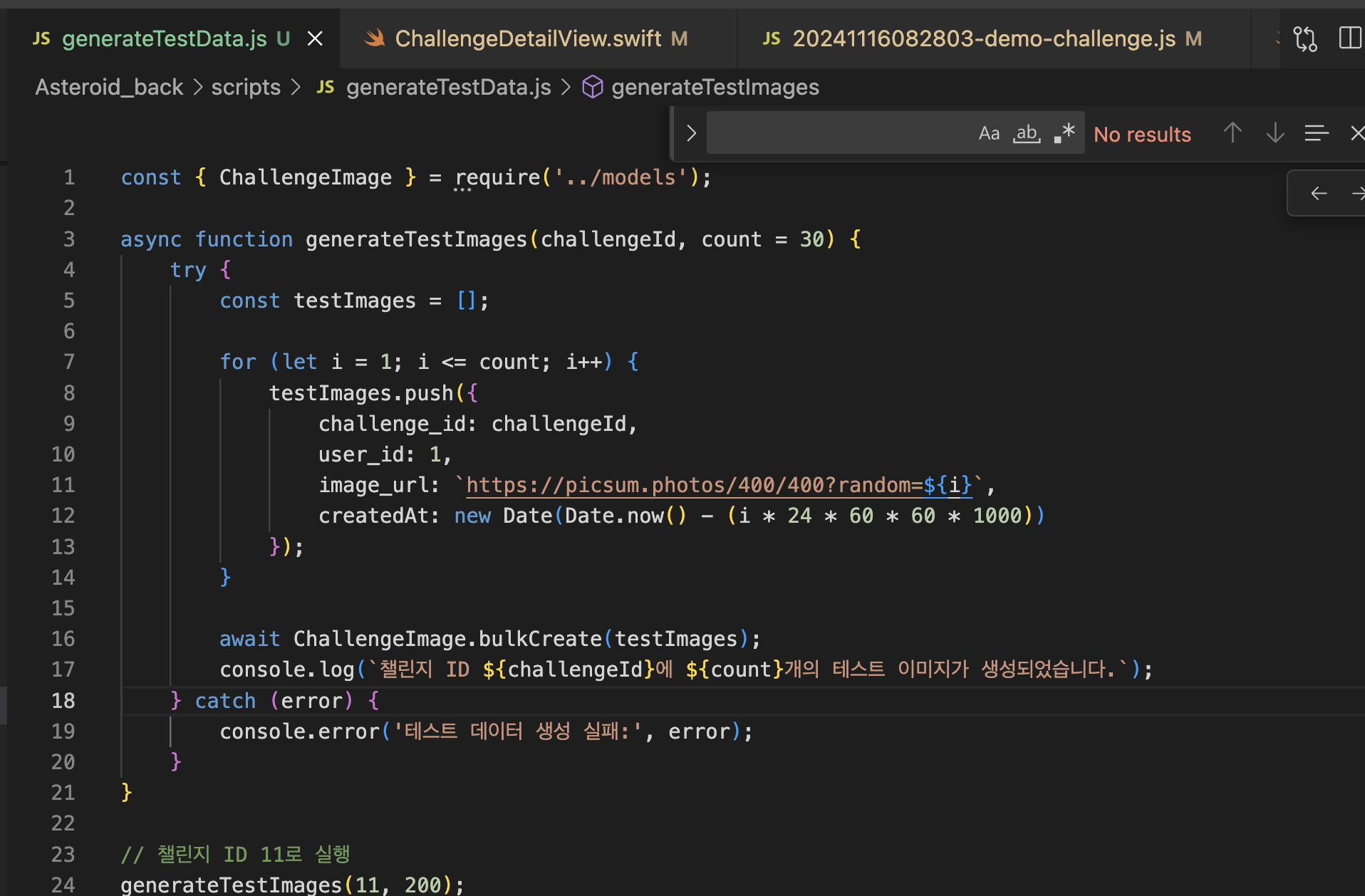 그리고 일단 테스트를 위해 챌린지 id = 11에다가 넣어주었다.