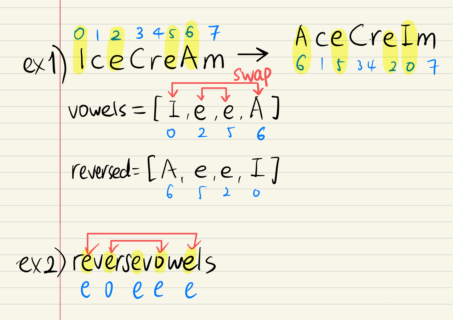 나도 이렇게 처음에 s의 vowels를 따로 리스트로 만들어서 이걸 마지막 원소{[-1])부터 집어넣으면 되지 않을까 생각은 했었는데 그럼 loop iteration을 해야하니까,, 어차피 reverse고 뒤에서부터 하나씩 꺼내쓰는거면 pop을 쓰면 되는건데 이 생각은 못했다.