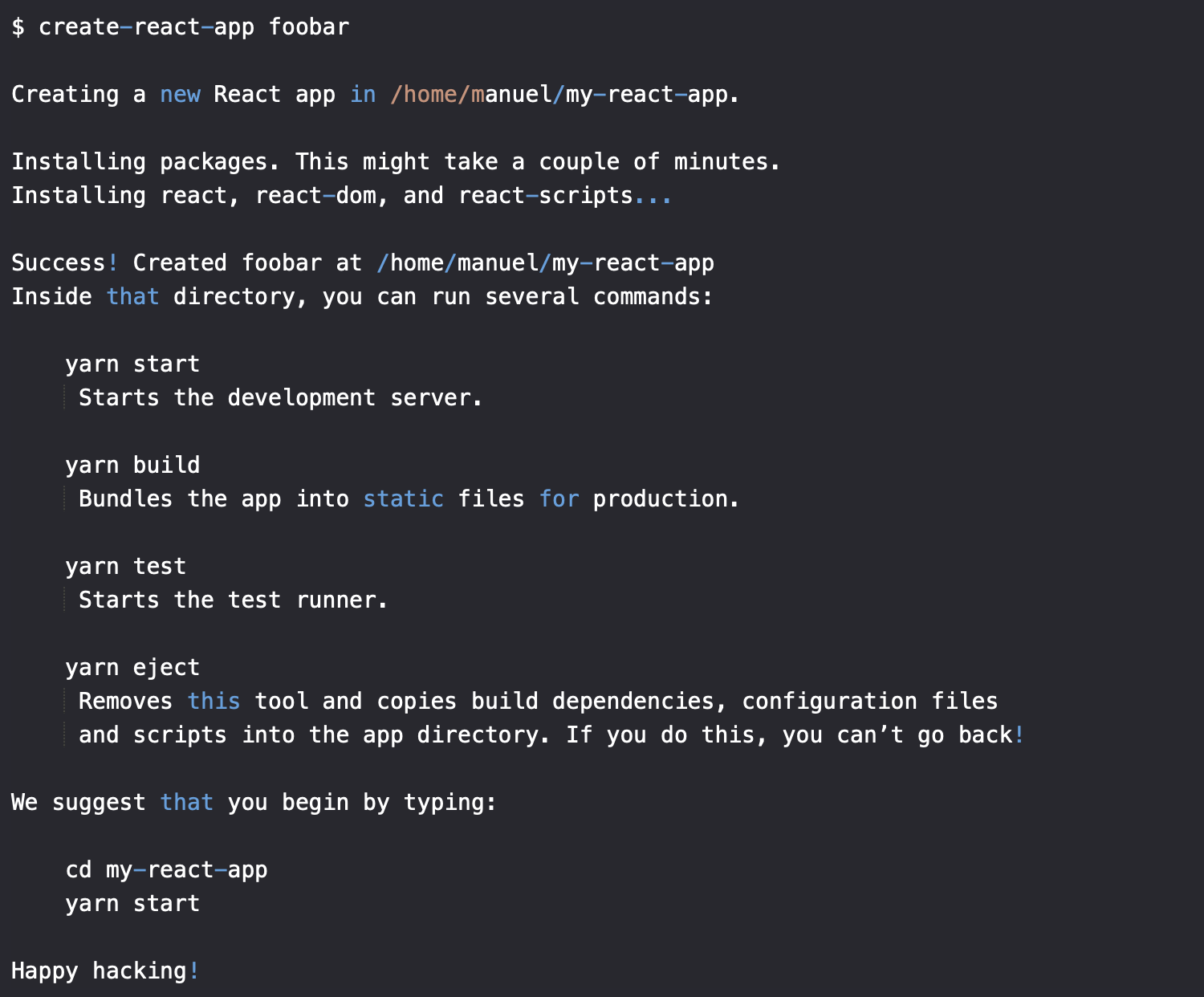 예를 들어, yarn으로 프로젝트를 설치하면 이렇게.. 아래와 같이 뜨는데