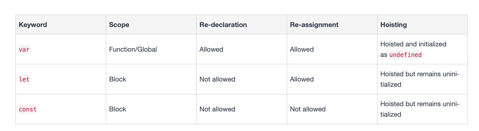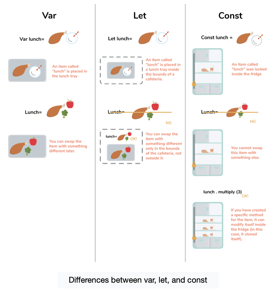 그러면서 원래 사용되던 var를 이제는..변수를 사용할 때 사용하게 되면 다소 superfluous한 느낌이 되어서 이제 거의 JS를 사용할 땐 변수에는 let, 상수에서는 const를 사용하는 편이 되었다.