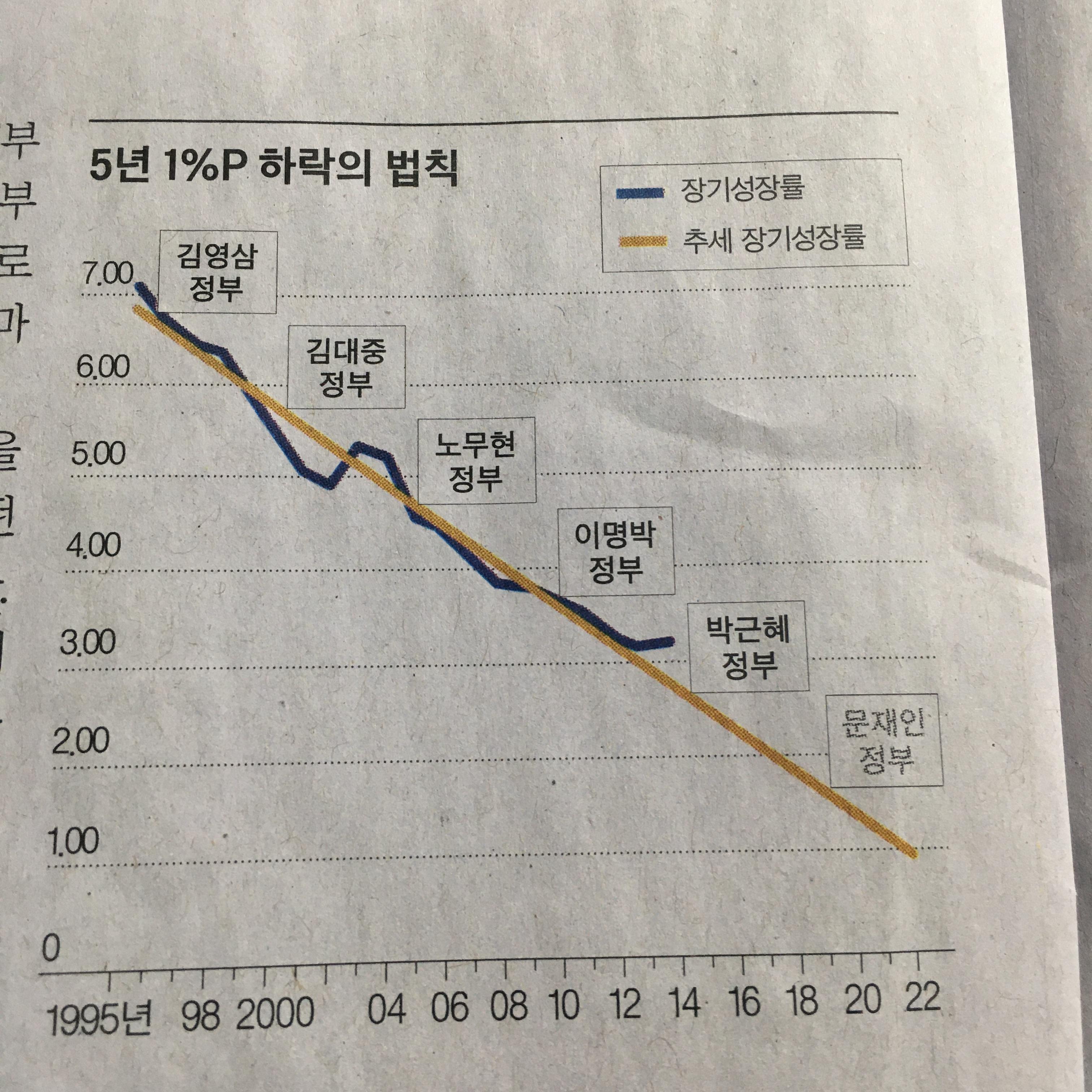 정권마다 성장률 1%P로 하락